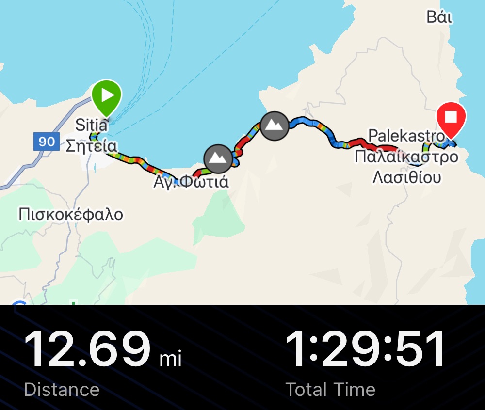 At about half four we arrived in Heraklion. A fair few people got on, some with the intention of sleeping on the seats and others going to a cabin. At seven, the Sun finally made an appearance. Only an hour and a half left. We were sailing east along the north coast of Crete, which was now finally visible. We were getting off the ferry in Siteia, the most easterly port of the island.