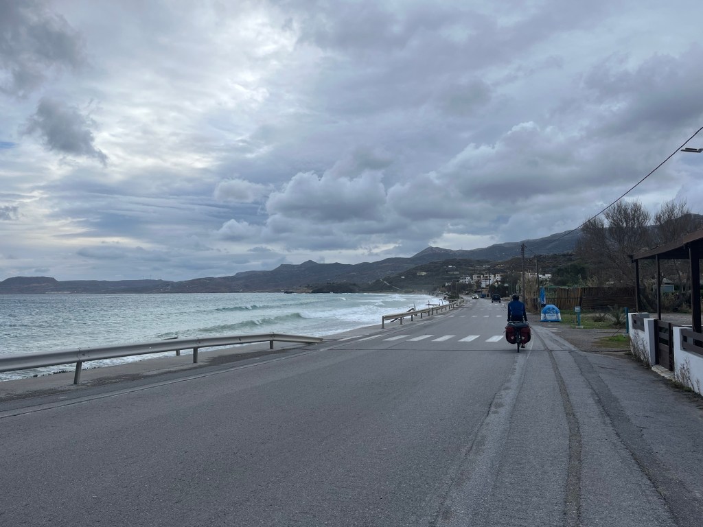 Jonathan was feeling even worse now, and the welcome relief of being able to curl up inside while the skies outside were overcast was appreciated by both of us. We made wraps, with the peppers, for dinner and then went for a short walk to the beach. The wind continued to blow wildly. We’d been told that Crete is so large it doesn’t feel like an island. It definitely felt like the edge of the world though.