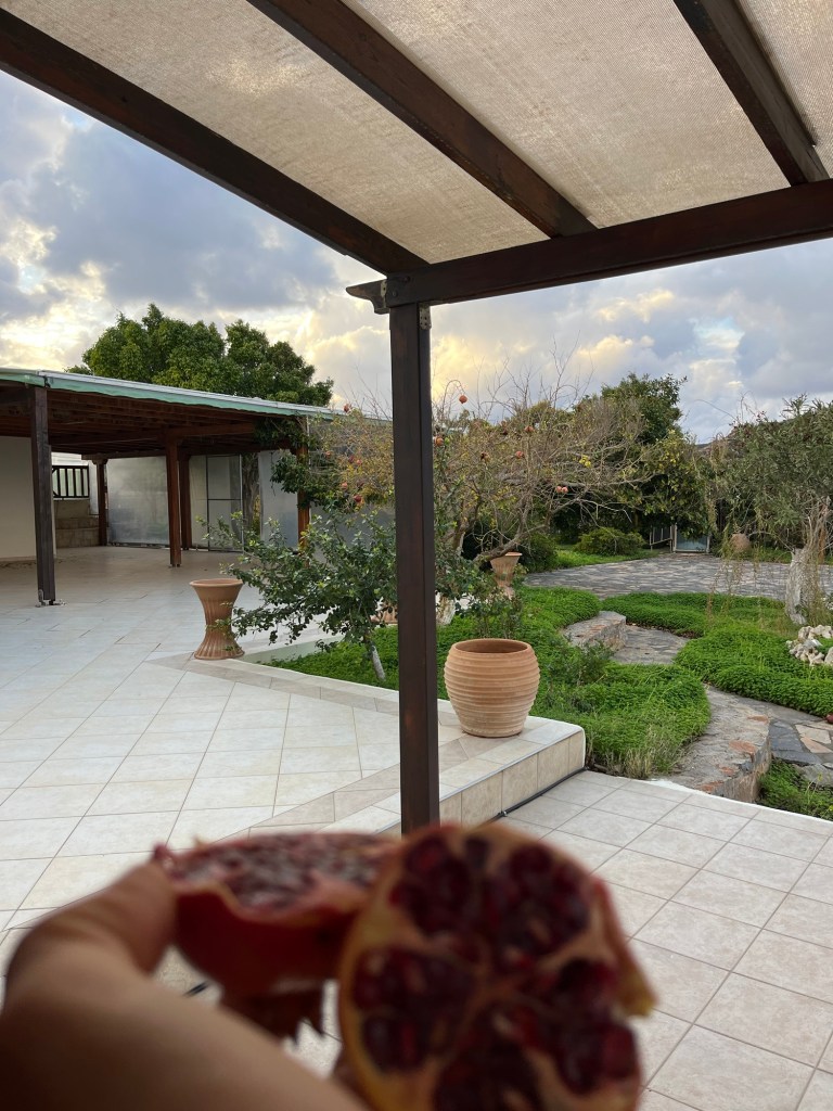 The house was a further mile from the village and we picked the best route, ignoring google maps as it tried to send us to the rear of the house and have us jump over an olive grove. The road that led to the quiet and windy beach was concrete and, intermittently, a dirt track. This side of the island is known for being ideal for wind surfing and there was a surfing bar closed up for the season.