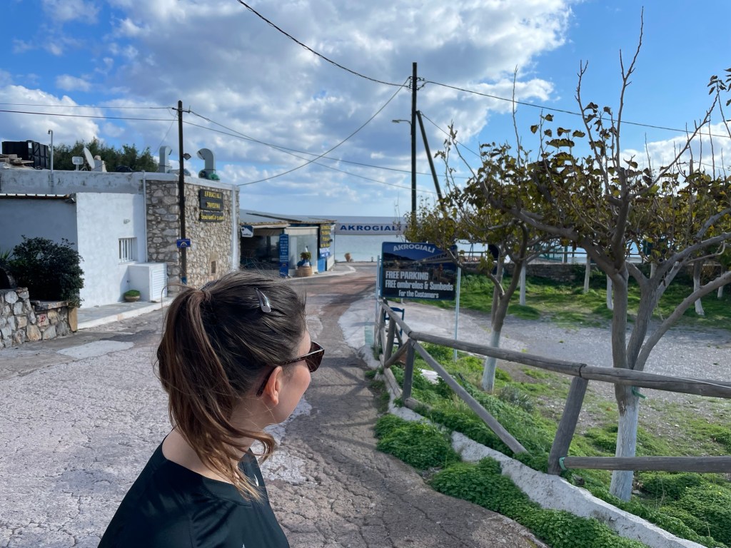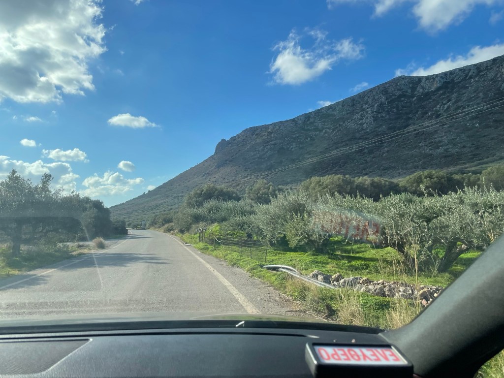 We sat in the shade first, still feeling hot, but moved into the Sun ten minutes later. Thermi still wasn’t here. Had we made a mistake communicating where we’d like to be collected? By ten past we were panicking a little and tried calling and texting the number we’d been given. It didn’t work and the ringing tone was a bit unusual. Just as we considered whether we should walk to Zakros, Thermi arrived!