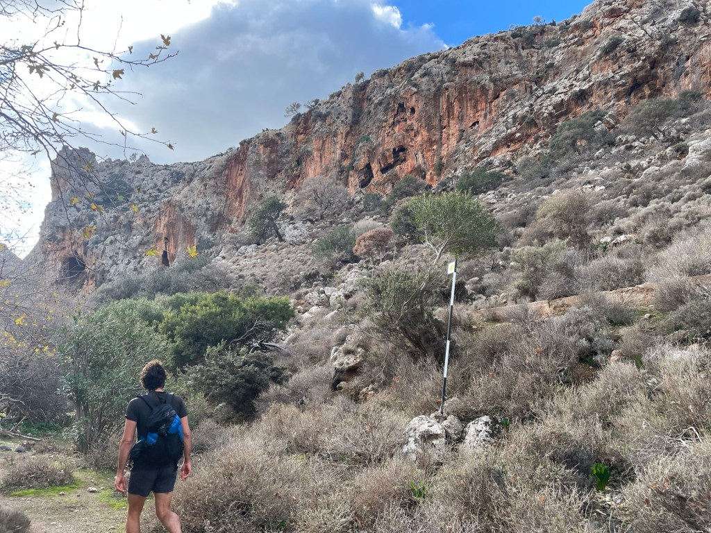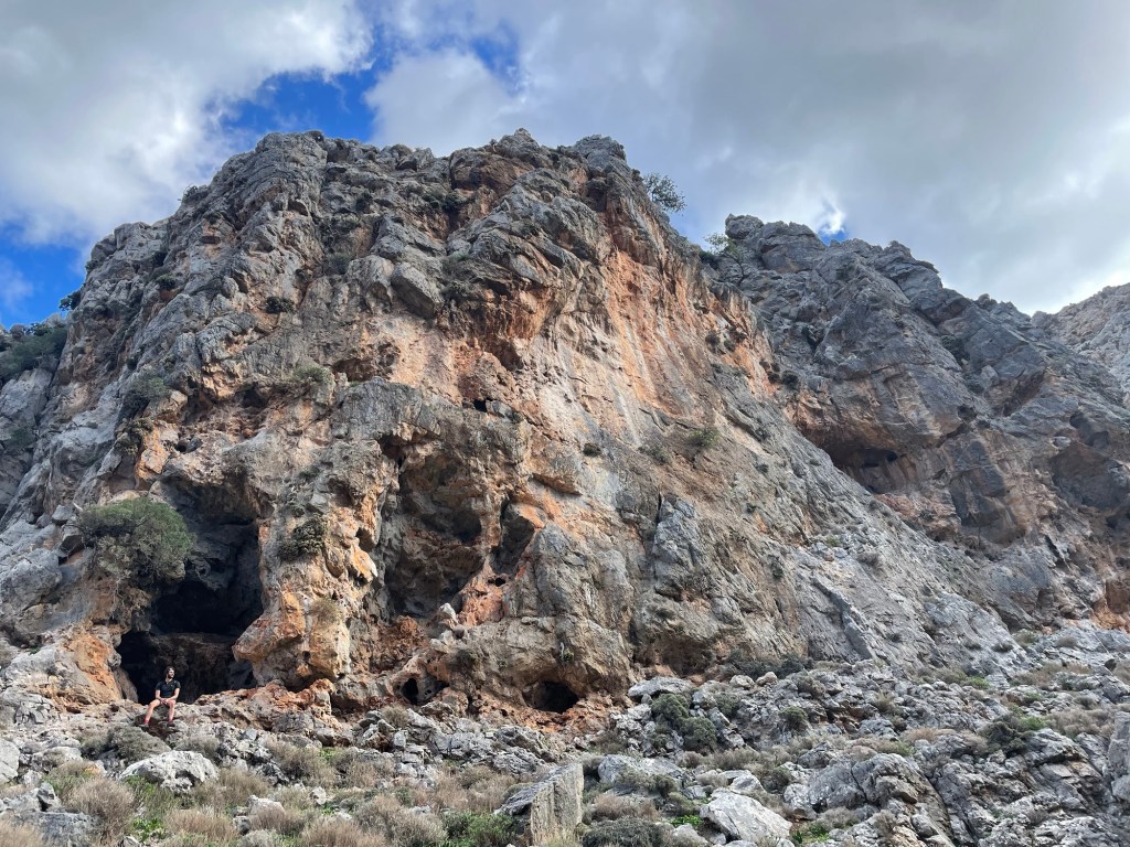 We followed the narrow path as it weaved down what we could only assume used to be a river bed. Water can’t have flowed here for a very long time. The caves appeared, clearly a ridiculously difficult place to put a body. There was no water in the old taps anymore either, all dried up now. As you’d expect Crete has an extreme shortage of water that is getting worse and worse as it is hit by droughts and suffering ground water supplies.