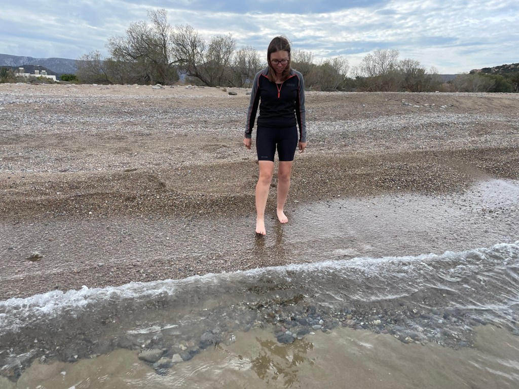 We went to the beach to walk in the water. It felt silly not to have gone in the water at all. But it had never been the right weather when we were by the beach. We had pasta for dinner, with aubergine and the broccoli. We made a big loaf of bread too. And also cooked the fava down into a nice curry flavoured dip to take with us. We packed our things as best we could and let the slight fear of the coming unknown wash over us.