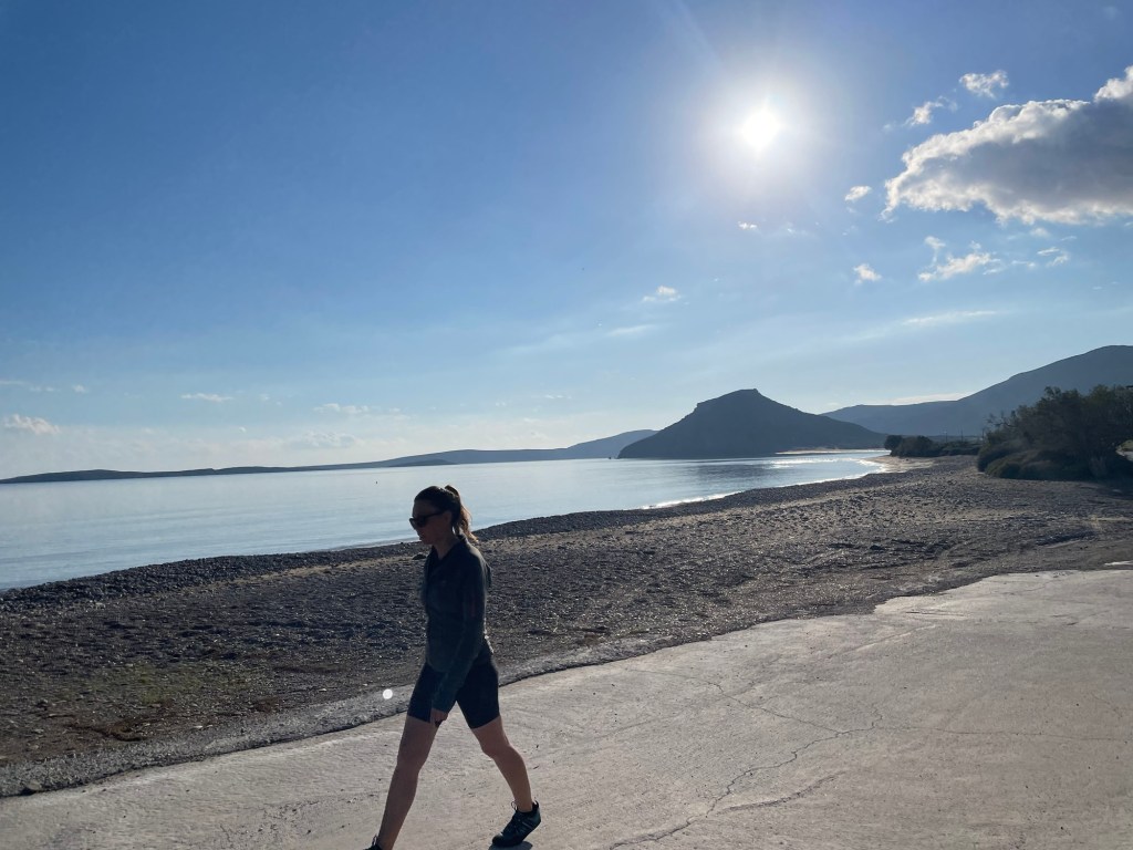We had porridge for breakfast, a welcome simplicity. Though we didn’t have a taxi to make, we wanted to leave the house as early as possible for our walk. We’d decided to head to Βάι, pronounced Vai. Originally we’d planned our ventures the other way around, and would have headed to the gorge today. Thermi wasn’t available today, so needs must.