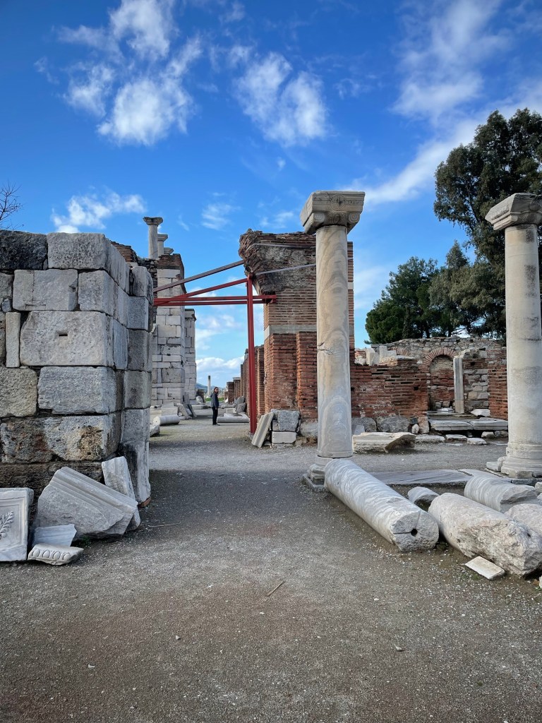The town is one of the most visited destinations in Turkey. Because of Ephesus. On Ayasuluk Hill, behind the hotel we were staying at, is the Basilica of St. John and a Byzantine castle. The former was built on the site of Apasa, the capital of the Kingdom of Arzawa, which reached its height during the 14th Century BC. John the Apostle was probably buried there and then the Roman Emperor Justinian I built the basilica which would still be considered to be in Ephesus though now it’s in the modern town.