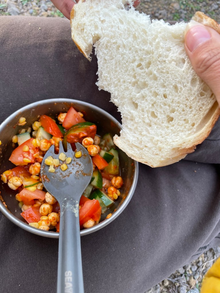 We sat outside much later than we normally did. It was so peaceful here. The day before had felt horrible, and this was a healthy reset. The coast provides comfort. Is it instinctual? Is it the fact we’re only exposed in a couple of directions? The sound of water lapped around us. There could be rain tonight. We had more climbing to do for sure, but without it the land is boring and unwelcoming.