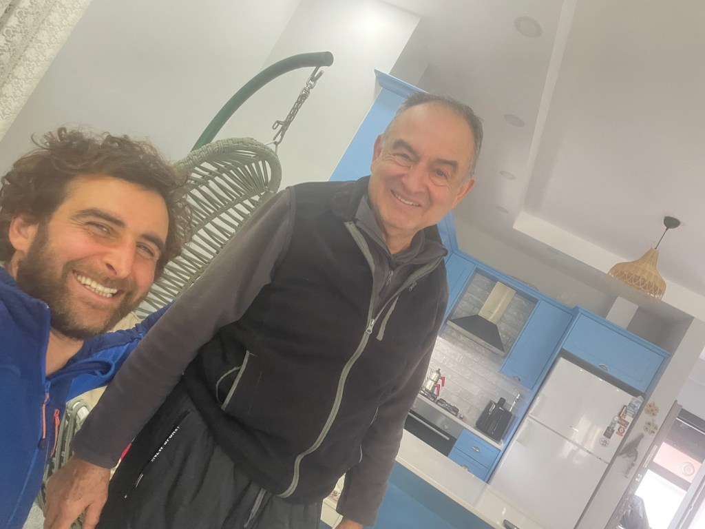 Murat, the younger and keen cyclist, invited us back to his house to have coffee and a sandwich. We reluctantly but quite willingly accepted. It was just that we had started pushing a bit harder but we couldn’t say no to meeting and talking to some friendly people. Why else would we be here? We wheeled our bikes with them, along the quiet street to Murat’s house.