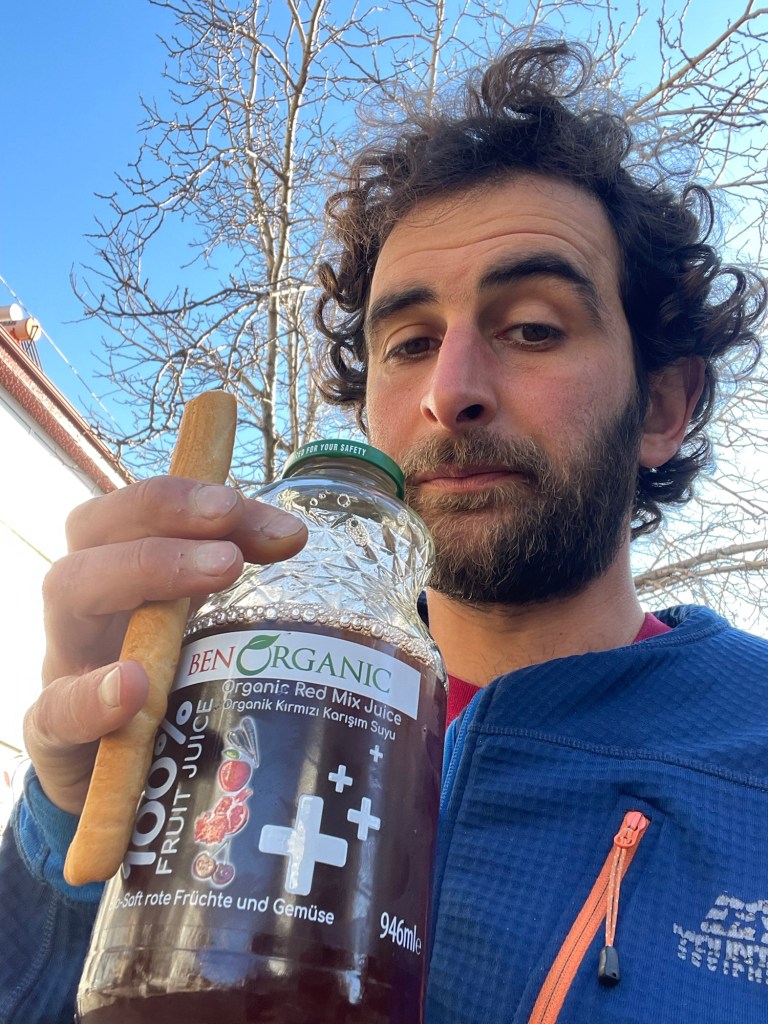 We lay around and watched the last, but predictable, episode of Traitors. It was a poor ending. At around 3pm we walked to the shop. Even the sight of the Sok was making Jonathan feel a little nauseous. We got breadsticks, apples and a big glass jar of organic fruit juice. For some reason that seemed appetising to a sick belly. We went up to the BIM too and bought bananas and water trying to get foods recommended as the BRAT diet.
