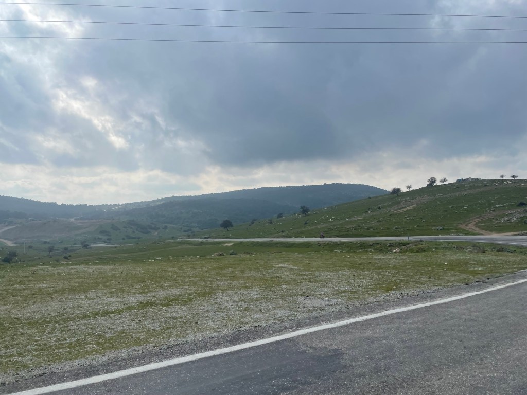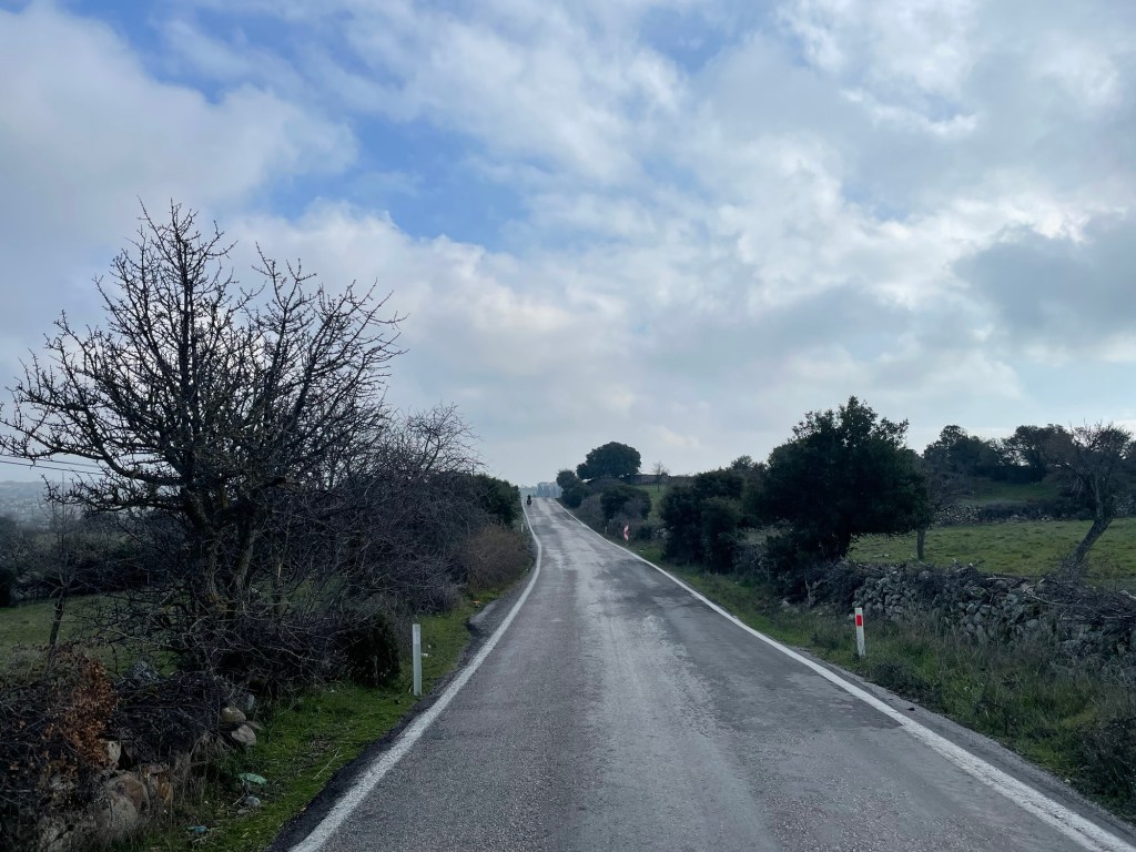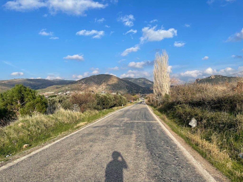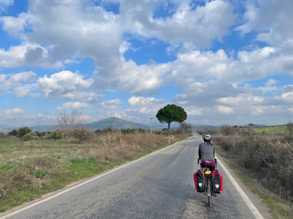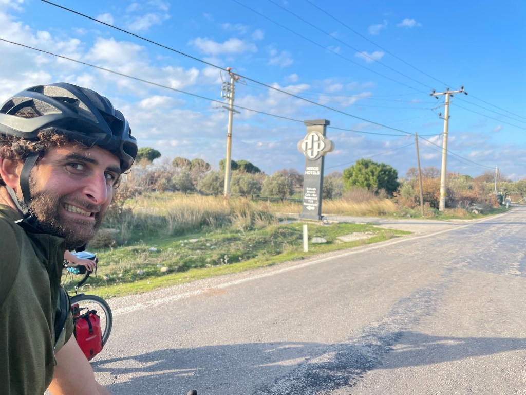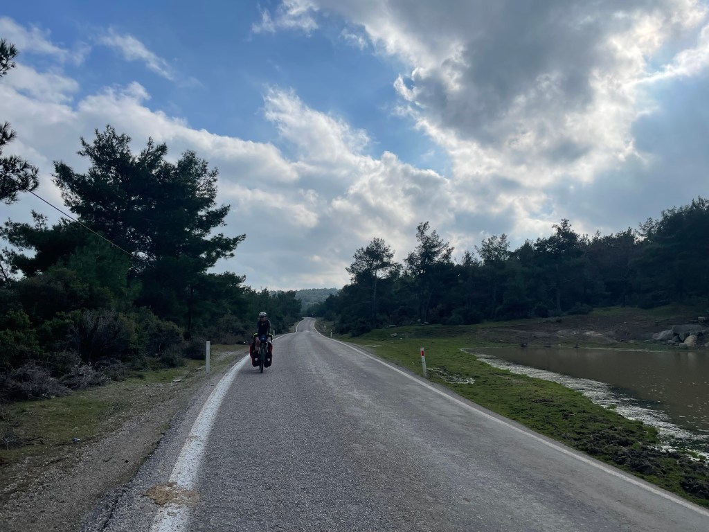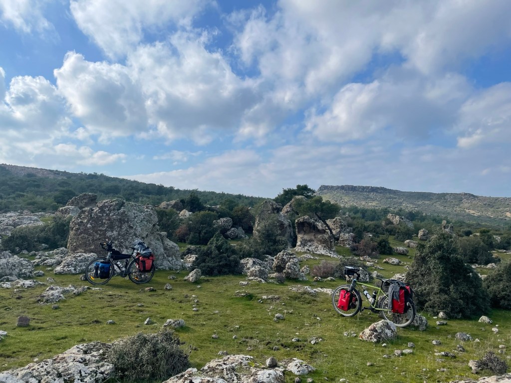 It was finally time to descend from the plateau we’d been riding on. A couple of hundred metres to drop and not too steeply. We were covering some kilometres now. As it was that unfortunate time of the month for Frankie we’d had no choice but to book another hotel further ahead along the coast. When we got to Gülpinar we went to the supermarket for some fruit and also some instant noodles. Picking food to eat had definitely become trickier.