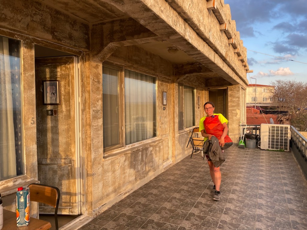 A woman came rushing out to open the ice cream chest, because we’d lent our bike on it. We laughed and said we were looking for the ‘otel’. They didn’t seem to have any other guests or customers in the restaurant. The room was perfectly good, but at €60 they were definitely milking it. Even still they seemed keen to have some guests and even let us put our bikes in the restaurant.
