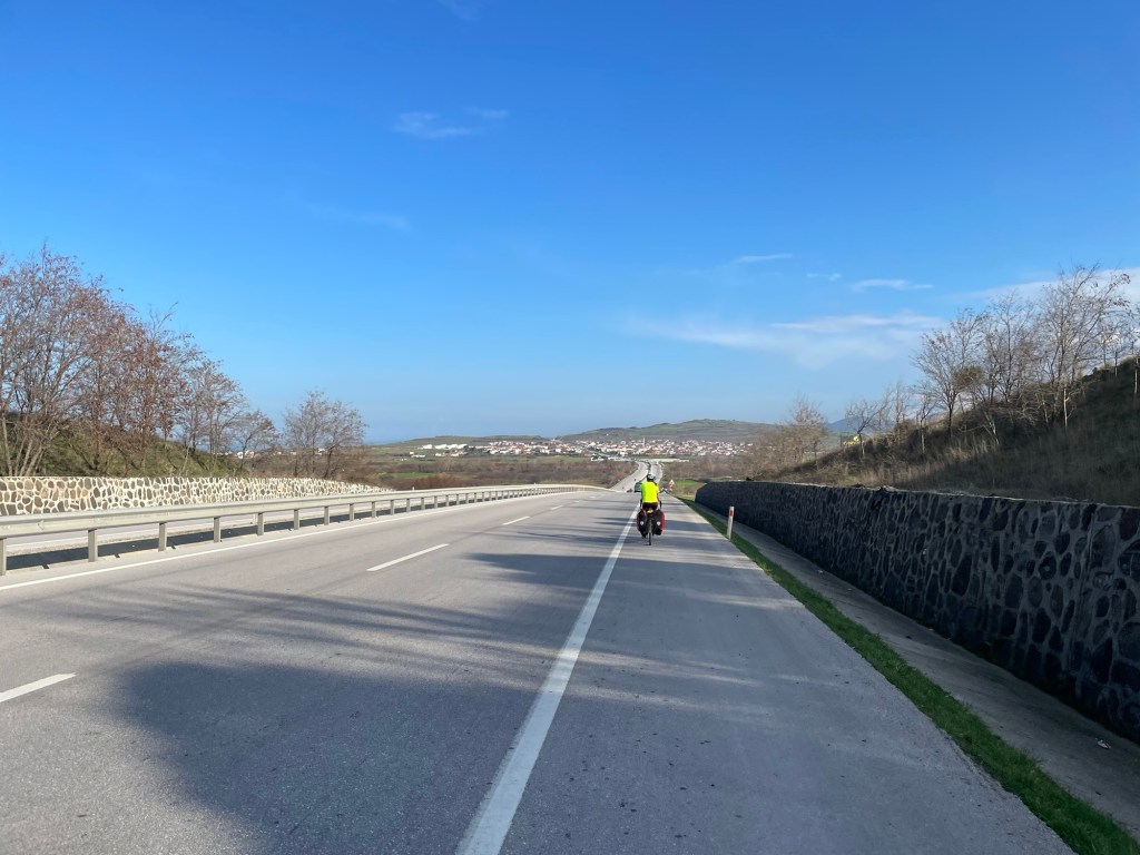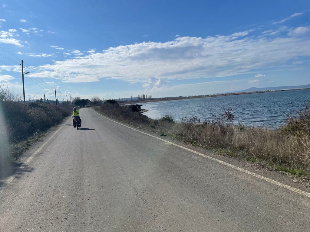 We pedalled back on the route at around half ten. Probably a bit later than we should considering our lofty goals. We were aiming for Bandırma, where we could get a ferry to Istanbul. There were meant to be strong northerly winds coming in four days. So we had three. We were keen to knock off as many miles as we could on the first day. Start strong and all that.