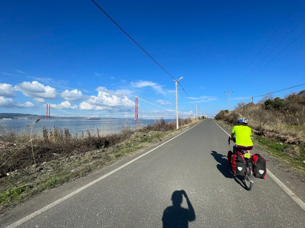 We were passing under the 1915 Çanakkale bridge. It wasn’t built then. It’s the longest suspension bridge in the world, and it was opened in 2022. The name is to commemorate the Ottoman victory at Gallipoli. In Çannakale everything was about the war too. There are huge memorials everywhere.