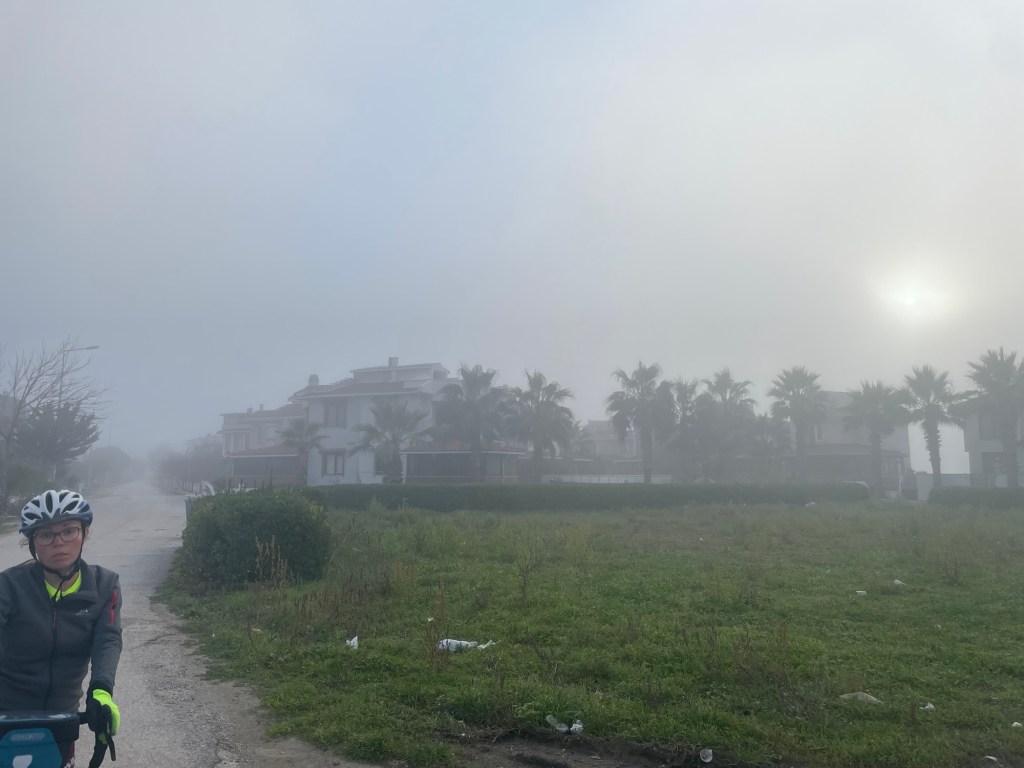 We were headed to Denizkent, where the road met the sea again albeit briefly. It offered us the best chance to find an easy campsite we thought. As we climbed the hill into Sinecki, we could see a dark cloud above. Was it rain? It wasn’t. As we got to the village we became shrouded in cloud again. This hill was blocking the fog. This village was bleak. We hoped we’d get back the Sun in Denizkent. We didn’t.