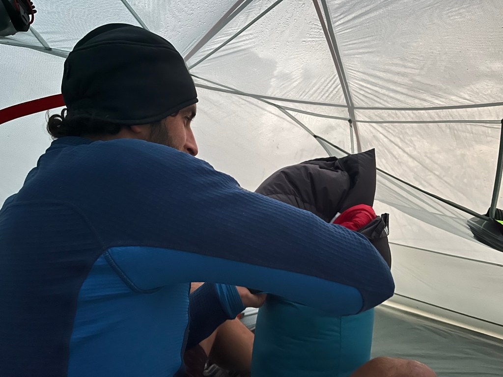 We felt in more of a hurry now. Not the best feeling with 6km of ascent ahead of you. It wasn’t foggy. The Sun was out. There was nothing to complain about. It started off steep and half the elevation was done in a couple of kilometres. The rest of it undulated a bit but of course it was mostly up. At the top we felt the wind. We did think that the plateau, of which we had 20km to cross, would be exposed.