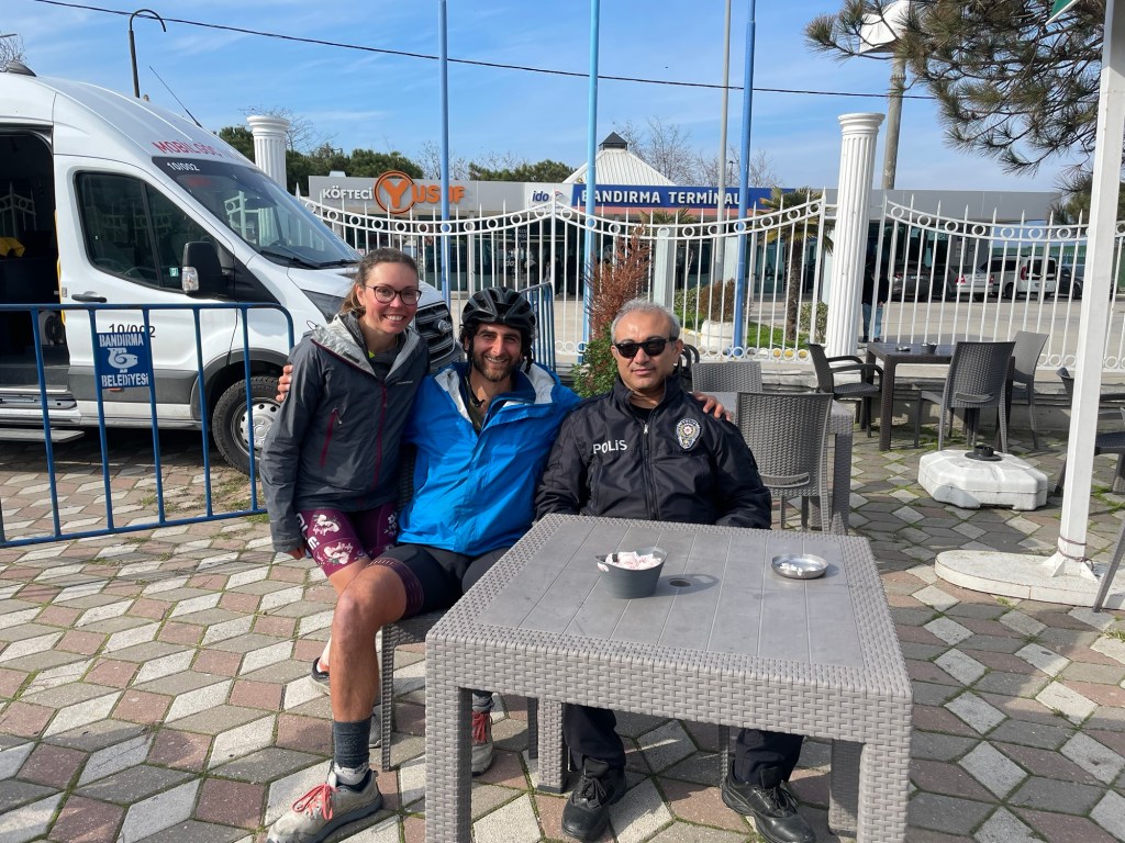 It was odd, he was clearly interrogating us, while also being greatly interested in us. Two glasses of tea later we’d found out that he had already had 9 teas that day himself, and he was there to protect against illegal immigrants. Of which there weren’t any in Bandırma, so he just questioned foreigners and drank tea and coffee.