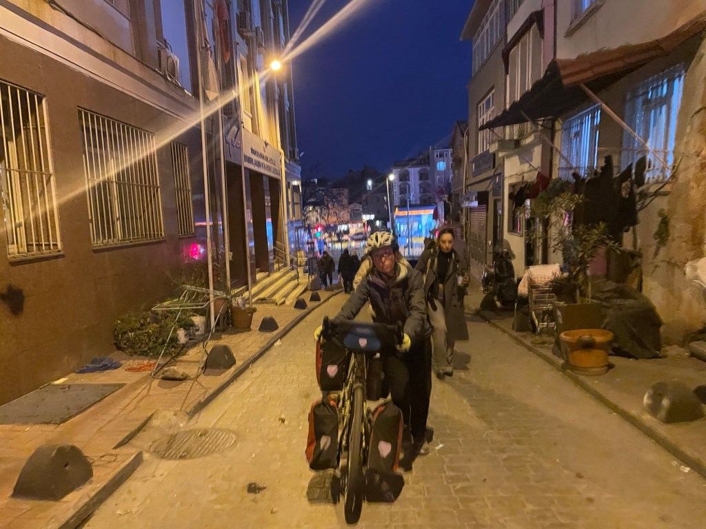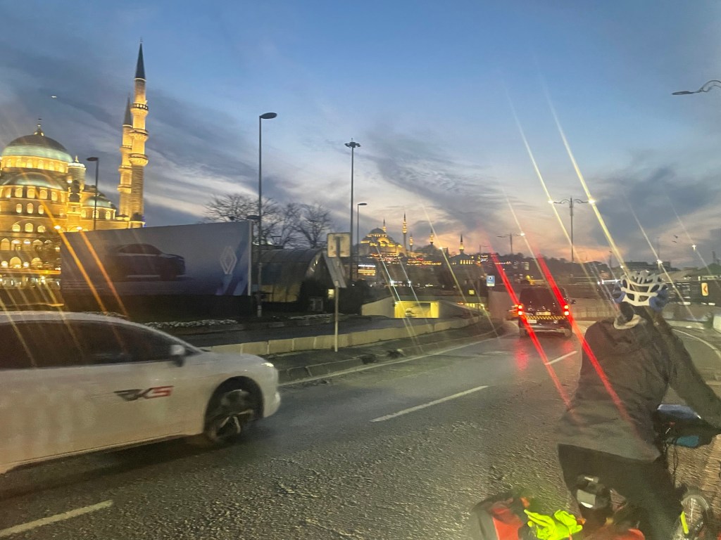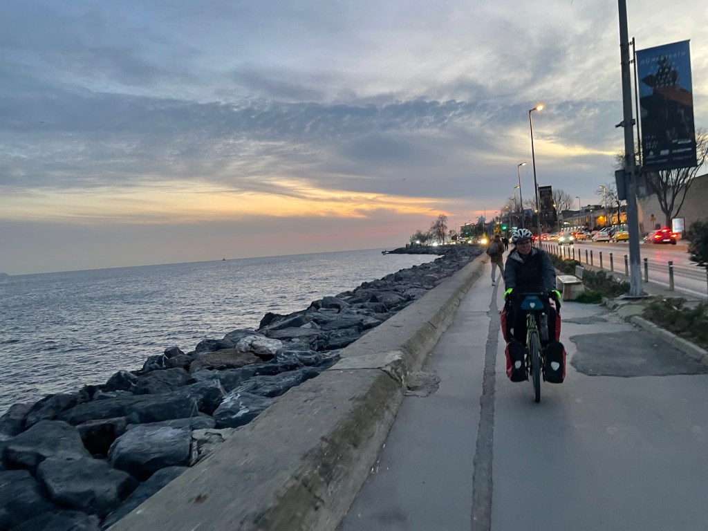 It was actually quite a long way across the sea of Marama. Had we actually cycled to Istanbul? It was 2.5 hours later when we finally arrived and were treated to some fresh air, it was like breathing again. The port was unassuming, nothing of any grandeur. A long line of shops and we were onto the main highway. There was potentially a cycle path somewhere.