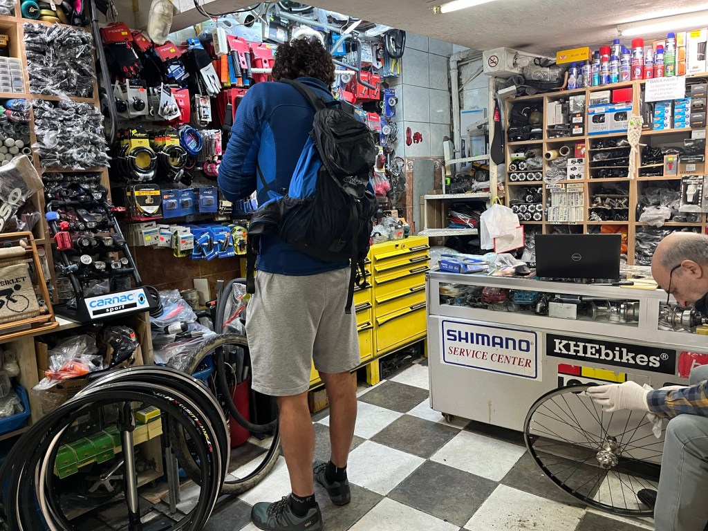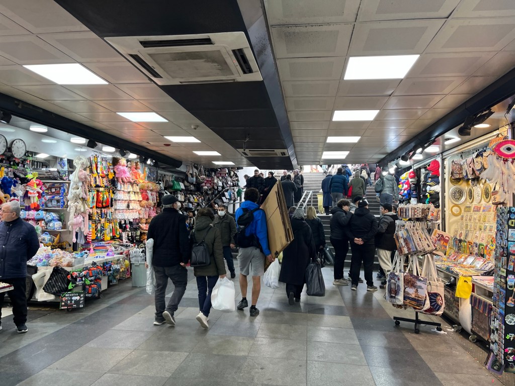 We wanted to go over the Galata bridge to Eminönü. It was hard to cross the road, and we had to use an underpass full of technology shops. We were off to get bike boxes in the bike shop district. We’d obviously never shipped bikes before and so had researched online for tips and what to do.