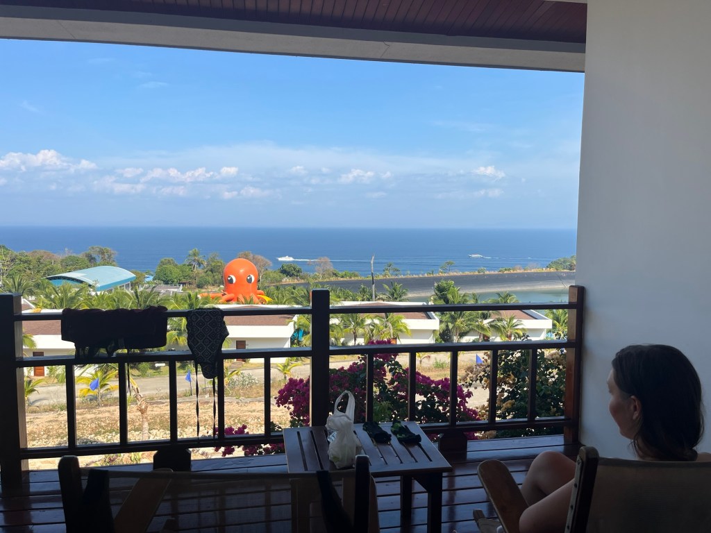 We had to walk down to the beach. There was no shuttle this early in the morning. It was all downhill anyway. Our boat driver was already waiting for us. He seemed a bit tired and kept rubbing his already red eyes. Jonathan wanted some flippers so we had to wait till 8am for the Let’s Sea bar to open.