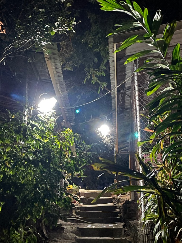 Dow was open again and we tried something different. Sweet and sour with fake shrimp and tom kha. The latter is like a coconut milk soup. We bought a mango, a cantaloupe and some sapodilla. A tropical delicacy that tastes a bit like brown sugar. We’ll be eating that again we hope. Before bed we saw bright flashes of lightening again. But no thunder.