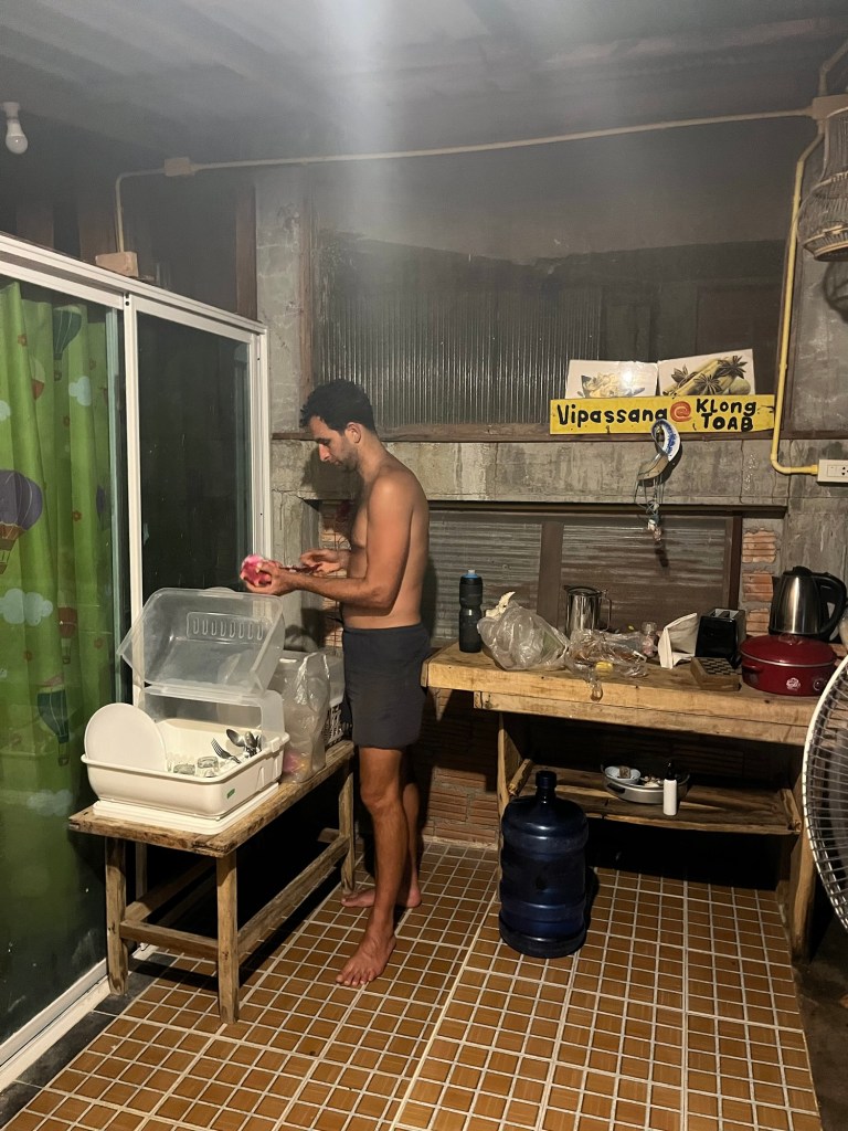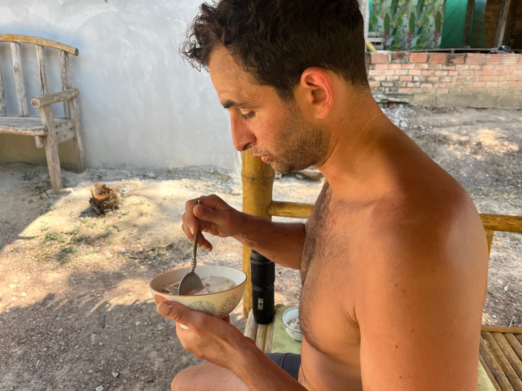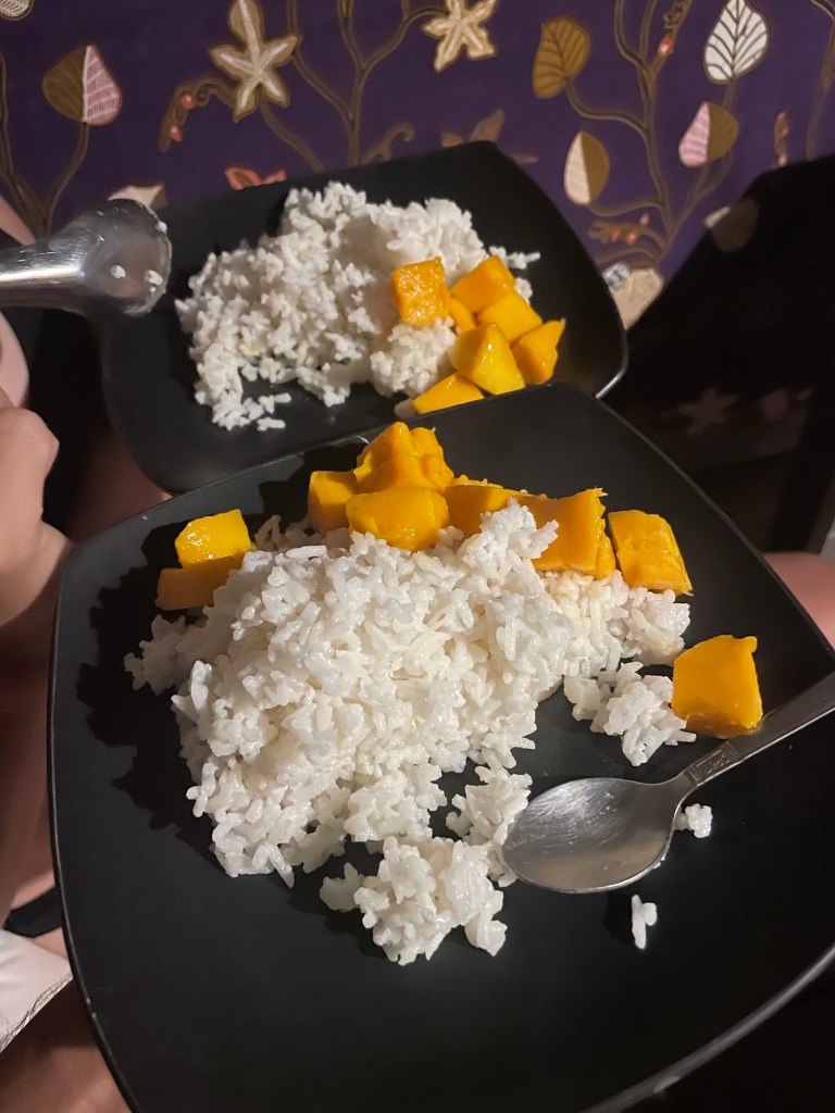 After dark we made mango sticky rice with the weird plug in wok type thing that had been left in our kitchen. The whole litre of coconut milk was almost gone now. For the rest of the evening we nibbled some fruit and nuts, watched an episode of the apprentice (we are just being honest!) and listened to the sounds of the jungle. We even saw a cockroach run across the room.