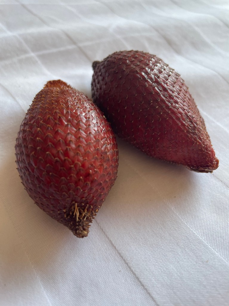 The best thing about the supermarket was that there were set prices. We bought a litre of coconut milk, some tofu and some salacca fruit. It’s small, red and rough on the outside. A big stone inside. We didn’t buy anything else just yet because it would get too hot. They were low on tofu so we bought that now.