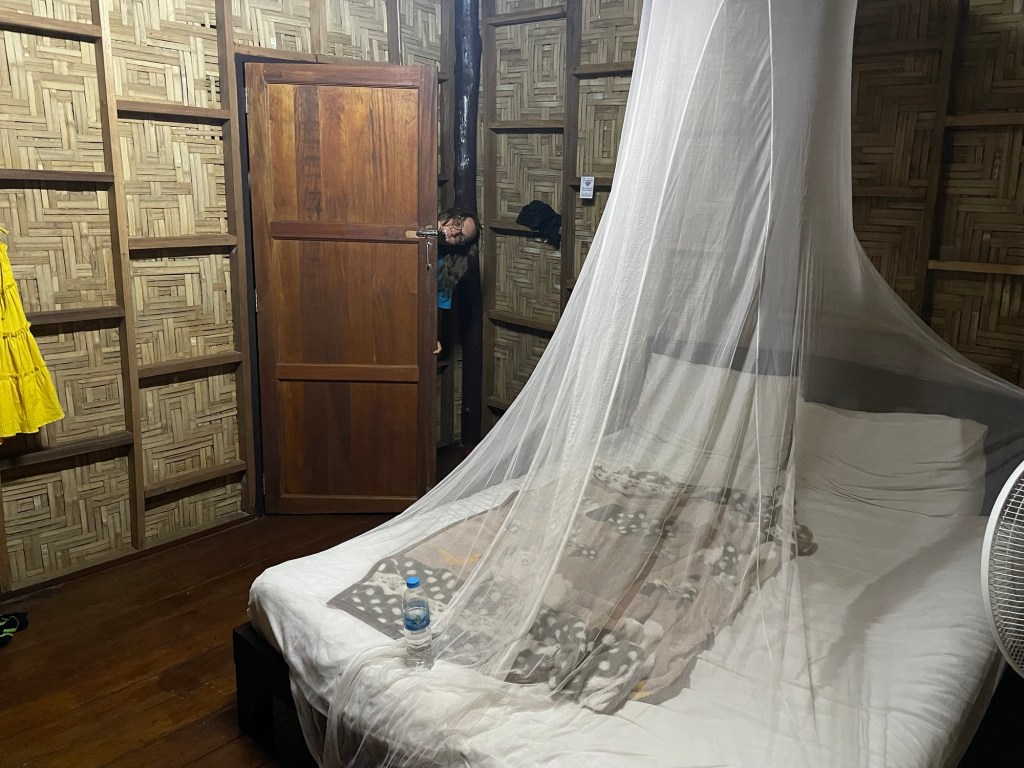 The ‘neighbours’ came back at half 8 but they didn’t stay long and immediately headed back out on their scooter. They seemed to make quite a lot of noise just having a shower. We definitely weren’t experiencing the island in the same way. We just hoped they didn’t come back too late and wake us up. The room felt a little warmer than the last one.