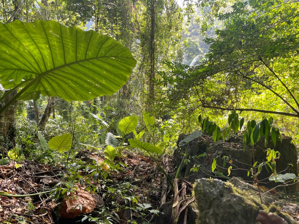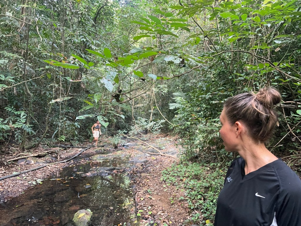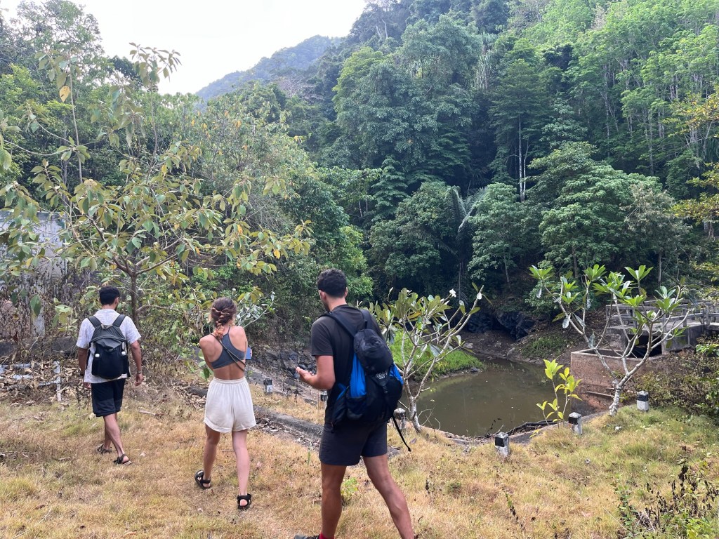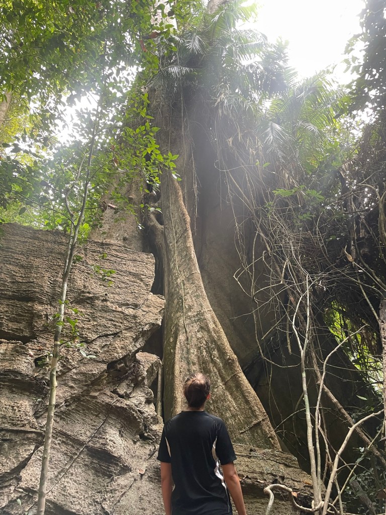 It was a nice walk with the company of monkeys. We passed more trees being tapped. They were definitely rubber trees. They’re not native though. Introduced and highly vulnerable to disease. We hung about waiting for Jero and Ana trying not to get bitten by walking around. We were a bit too enthusiastic and had arrived quite early. They arrived just before 8am, and we began the hike into the jungle in earnest. It wasn’t long till we all realised that it was our first proper jungle hike. Not a well laid trail. Tiger cave was ‘closed’, according to google anyway. So it wasn’t well frequented.