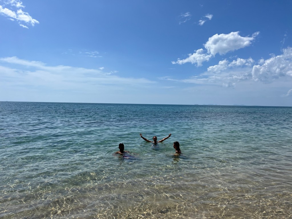We went back to the nice little restaurant we’d found the previous night. It was close by and Jero and Anna walked their scooter with us. We ate some ‘three flavours’, like sweet and sour, and some mango sticky rice. The woman remembered our dietary asks. After our meal we went briefly back to our hut, then headed to the nearby Nui Beach. Not to be confused with the possibly nicer, but further away down the coast, Nui bay. Nor the Nui bay we’d visited on Phi Phi Don of course. Nui means big in Māori. But we have no idea of the meaning in Thailand.