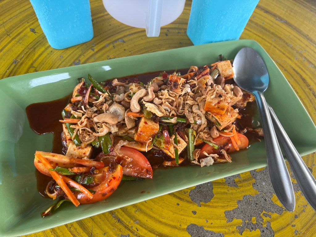 At around 5 or 6 we went back to the same restaurant yet again. We did look at a couple of others, but they cost more and they didn’t mention tofu. Plus, the lemongrass salad was incredible. We ordered it for the third time, along with a green curry. The other two dishes we had, tom yum rice and stir fried garlic were a bit average. But we needed to try something different.