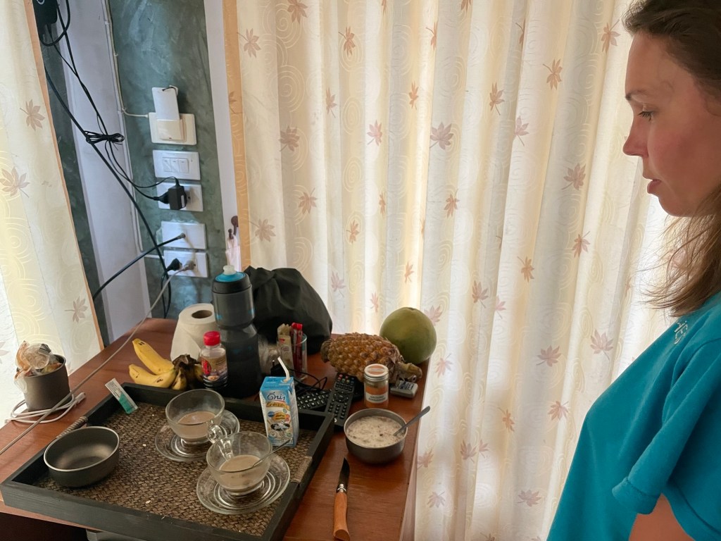 The fruit stall next door sold us a papaya and some more bananas. We obtained some nuts and more jujube on the way back to lie down a bit longer. We gorged on the many bananas we had. They were lovely to eat covered with coconut milk. Nothing else happened. The sea came in quite a long way under the room. We set an alarm for a barmy 5:30am and it finally, but only kind of, set in that we’d be moving again the next day.