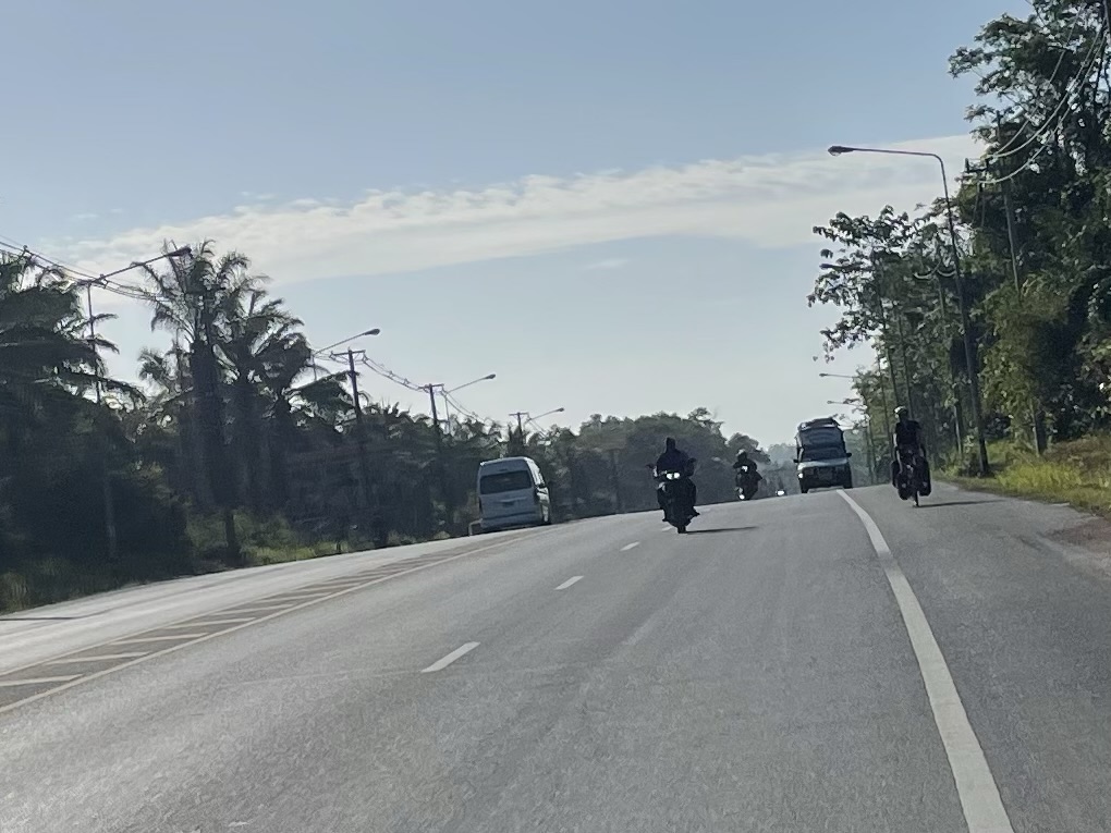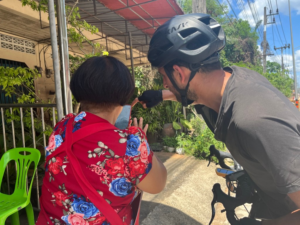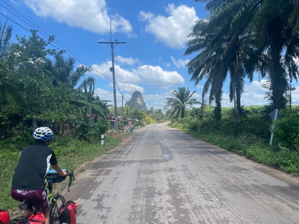 It was about 8:15 when we left. We could already feel the Sun bearing down on us. Hopefully tofu and fruit was worth it. We left the town on a wide, exposed and busy highway. A couple of turns later the traffic seemed to thin out. We can’t understand the Thai road naming system anymore than the Turkish or Italian. Back home in the we know that A1>A14>A142.
