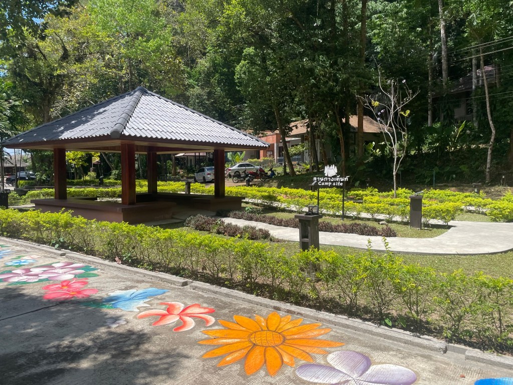 The restaurant had all the Jai diet signs outside but was sadly closed. We thought it might be. Than Bok Khorani national park encompassed the nearby karsts. It’s hard to imagine but they’re a beautiful backdrop all around you for miles and miles. We’d read online, and it was confirmed in writing here, that you can camp at national parks for just 30baht a night. We’d have to try some time. Access to the park was another high charge we avoided. Apparently there’s only 800m to walk inside, but it did look really enticing.