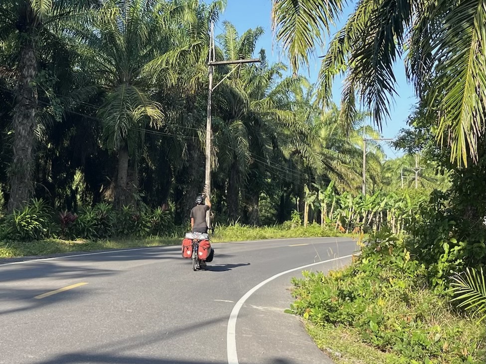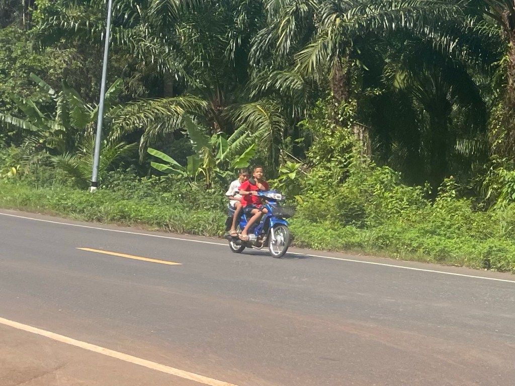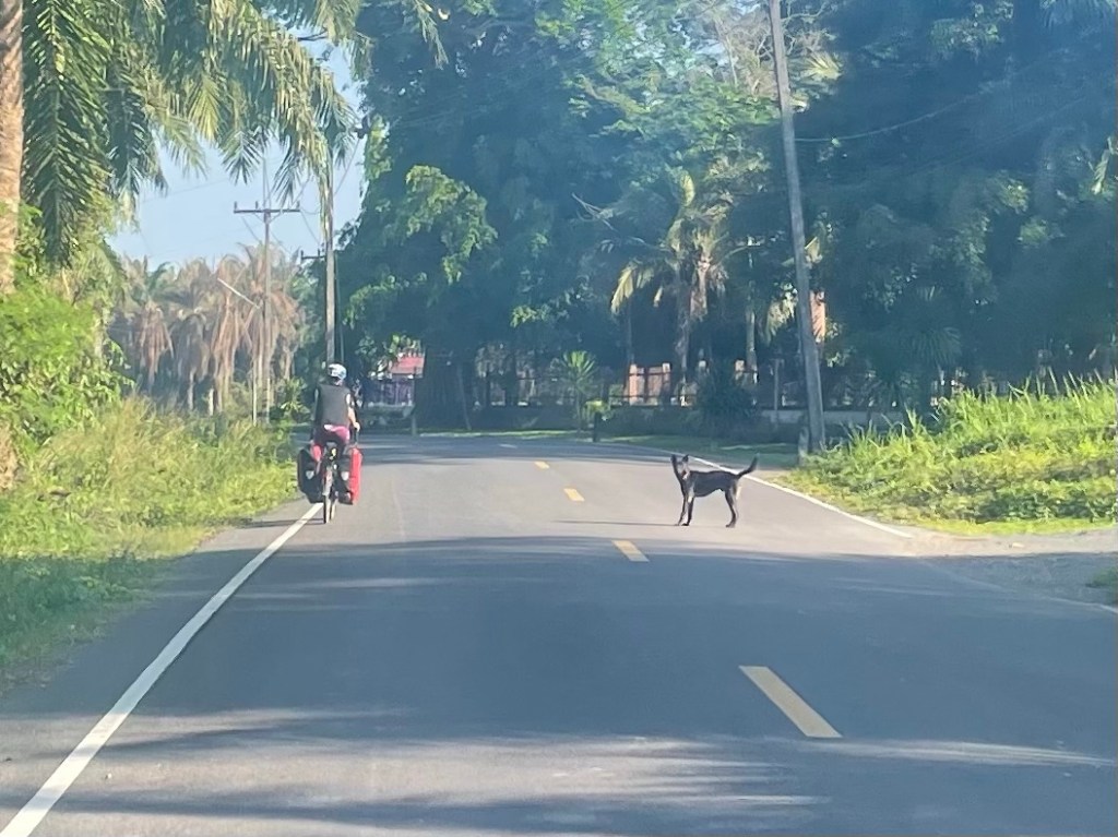 We’d chosen to go straight onto back roads. The highway was quiet this time of day but it just isn’t a pleasant place to ride. Within a kilometre we’d said hello to at least 10 people and 2 angry dogs. The Thai way of life was so intriguing to us. Multigenerational living is far more common. The families are often sat outside in the mornings, eating or relaxing.