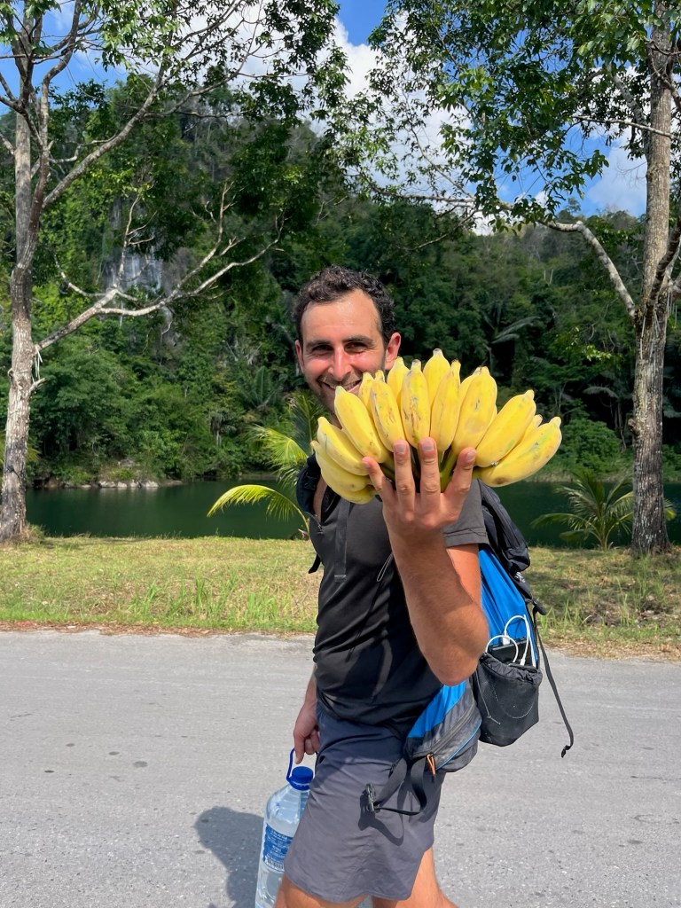 The temple was beautiful. Apart from the annoying dogs. Up some stairs was a big Buddha statue positioned under an overhanging cliff. We were slightly late for the sunset but watching the bats fly around our heads was awesome. It was hard not to stare at the jungle. It was presumably all primary forest. Undisturbed for thousands of years. A beautiful sight.