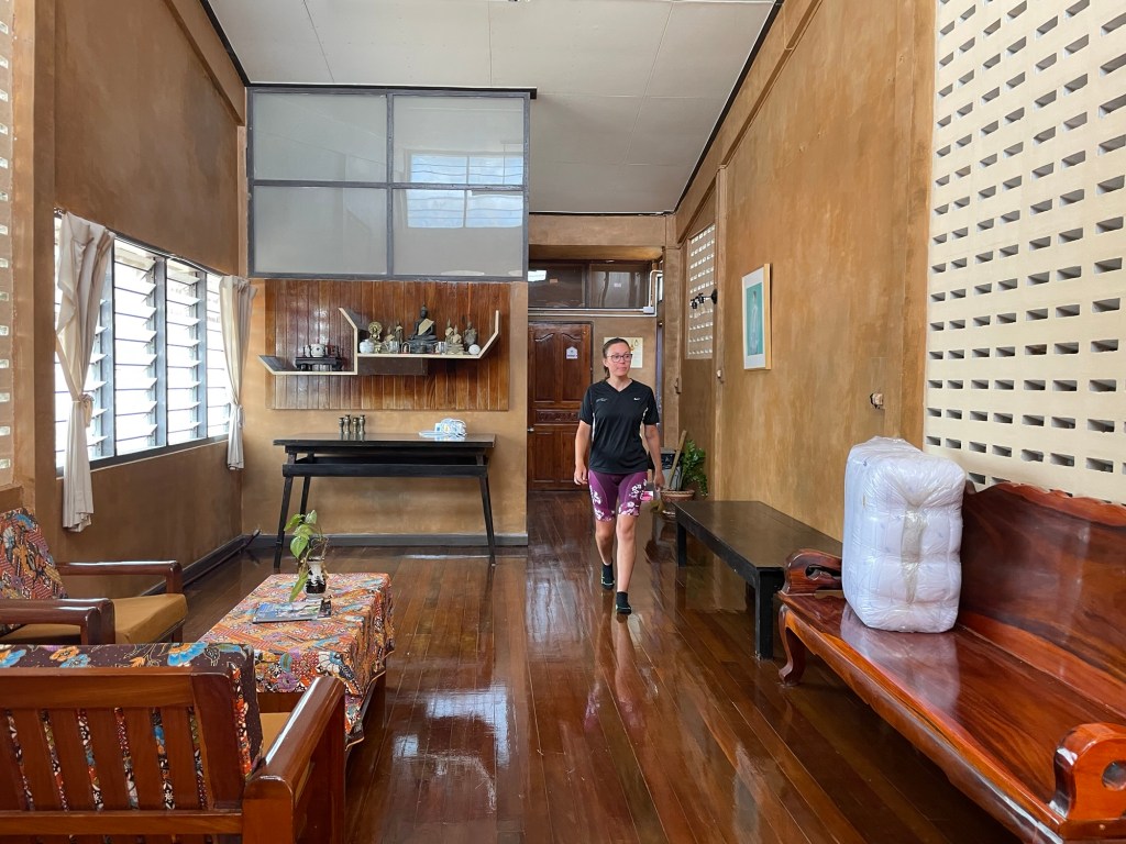 After what felt like an eternity we arrived in Talat Yai. We were worried we hadn’t got to the right town because locally it seemed to be known as ‘Takua Pa old town’. The main street was signposted as the ‘walking street’. Though it didn’t seem to be car free. We weren’t walking either. Baan Kong hostel was right on this street. It was only 11am but it was about time to check in for us.