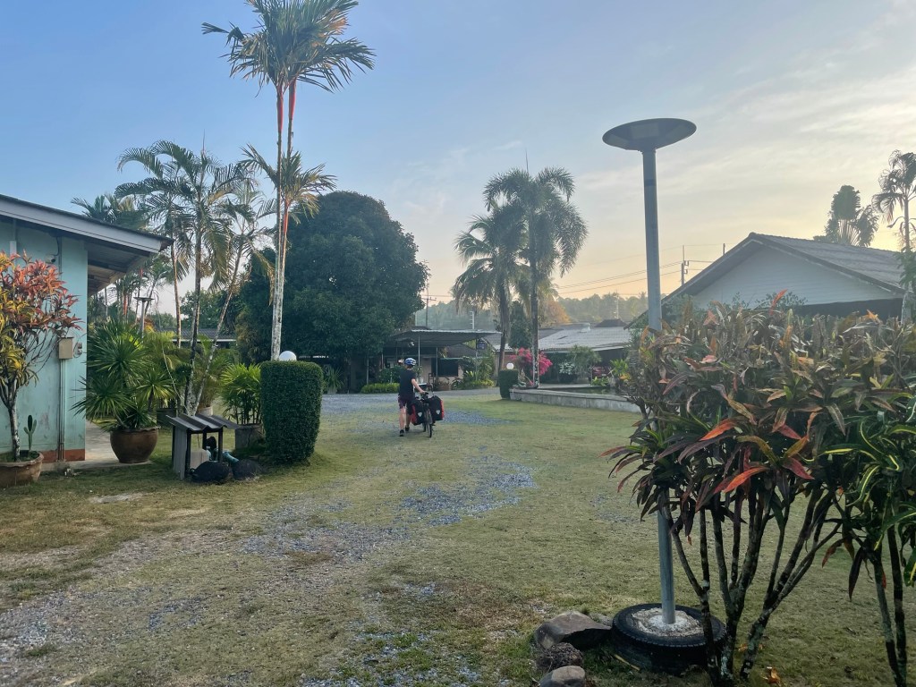 It was another 5 kilometres or so. Mostly downhill. Our legs weren’t happy when the road even went slightly up. We spotted the resort instantly because we could only read the numbers ‘390’ on the sign. A review had said it cost that much in baht. A boy greeted us. We were getting used to it by now. We gave him the money, he gave us some cold water and then showed us our room.