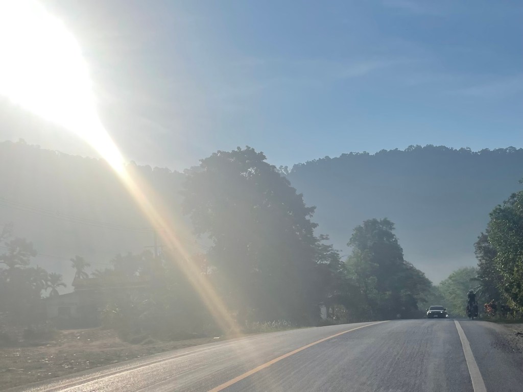 When we turned back on the road a little further up, it seemed to have deteriorated quite a lot since we’d turned off earlier. But it soon returned to normal. We still had at least 40 kilometres to go. It seemed like quite a long way even though it was still early. The Sun was pounding down. When you’re in the jungle it makes you think it’s much cooler.