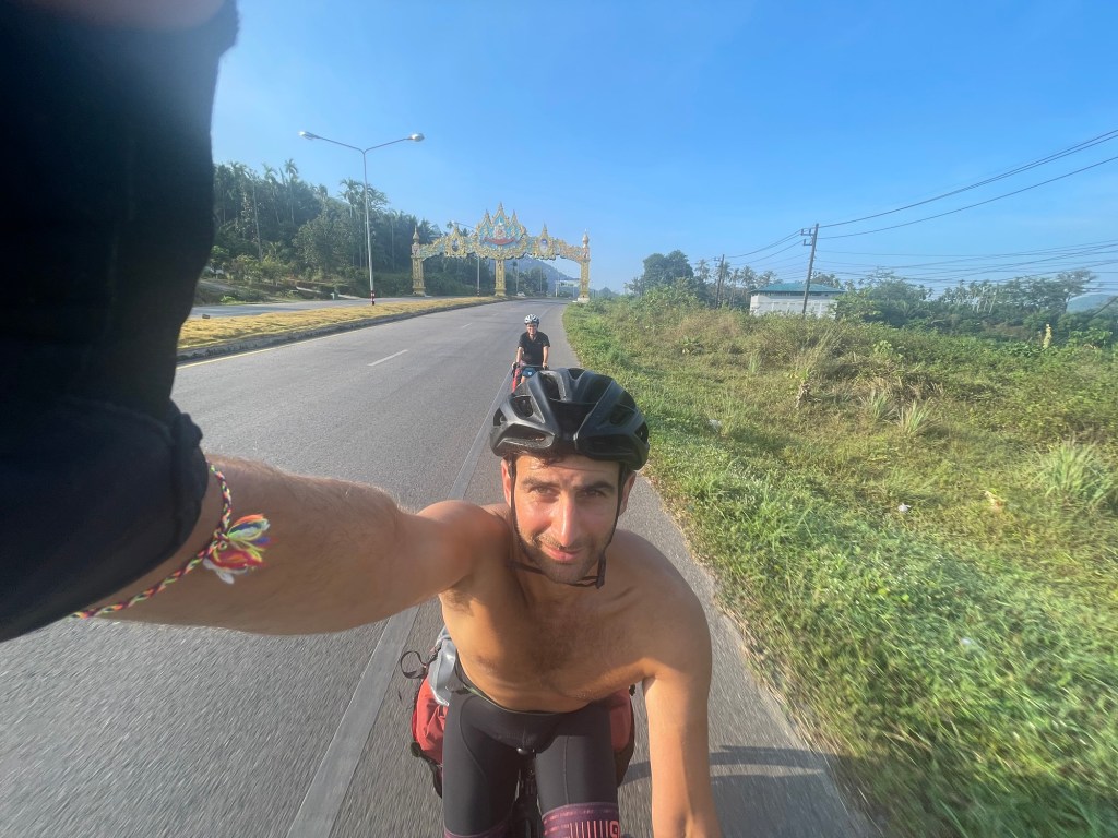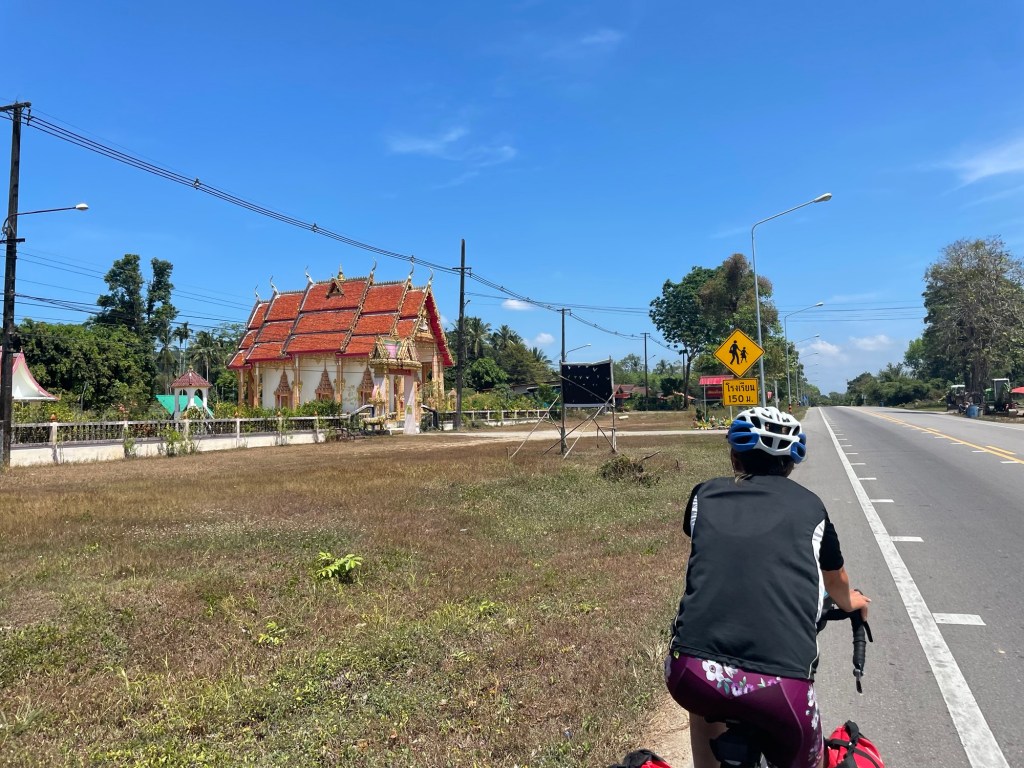 The road continued to be up and down in equal measure, occasionally steep occasionally shallow. It wasn’t very interesting. But it wasn’t boring either. There was the odd temple but not much else to see. It was 11:30am and ridiculously hot. The wind was blowing right in our faces and it was sometimes hot and sometimes refreshingly cool but we could never guess where and why.