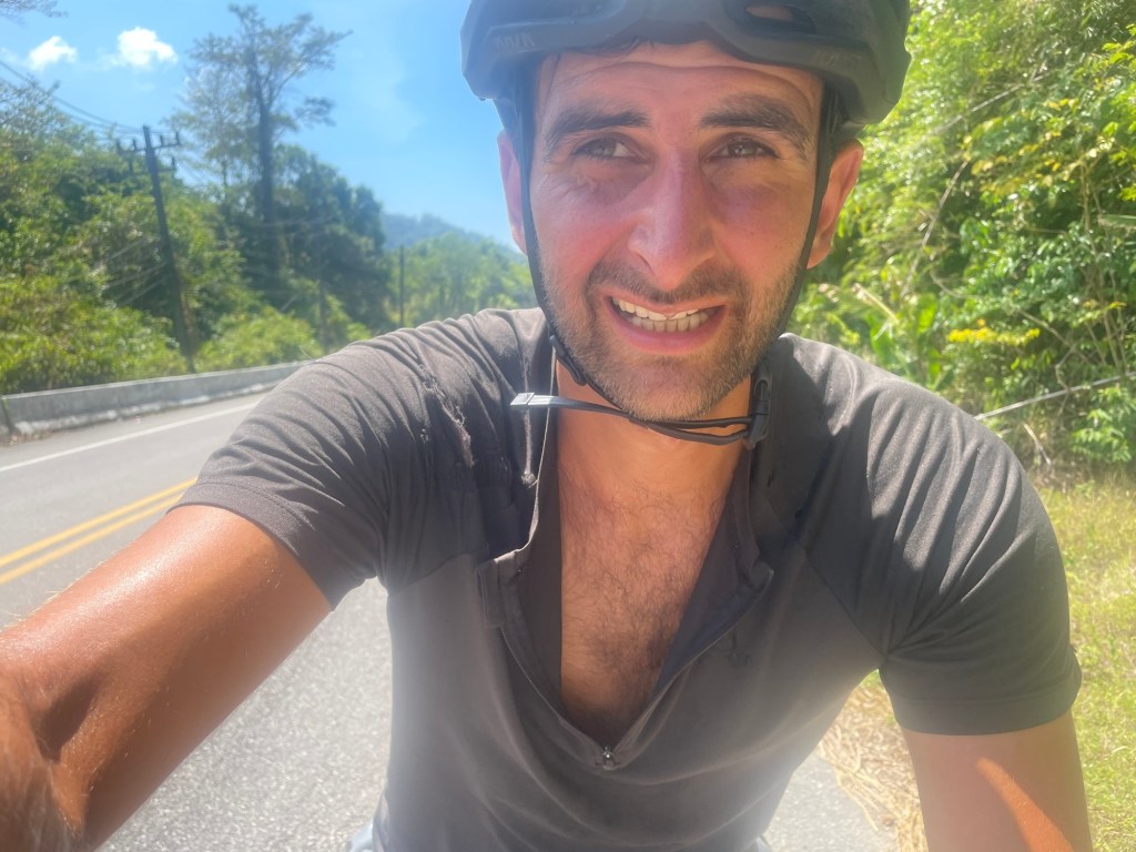 We passed through a police checkpoint of some kind. They just waved us through smiling. One of the police officers said something, probably some kind of encouragement. They had seemed to find a nice spot of shade though. The hills were relentless. Kenan had said they were bad. It just would not stop going up and down. We would sweat buckets on the way up but going down was nice. The combination of wind and sweat made us feel a smidge cooler.