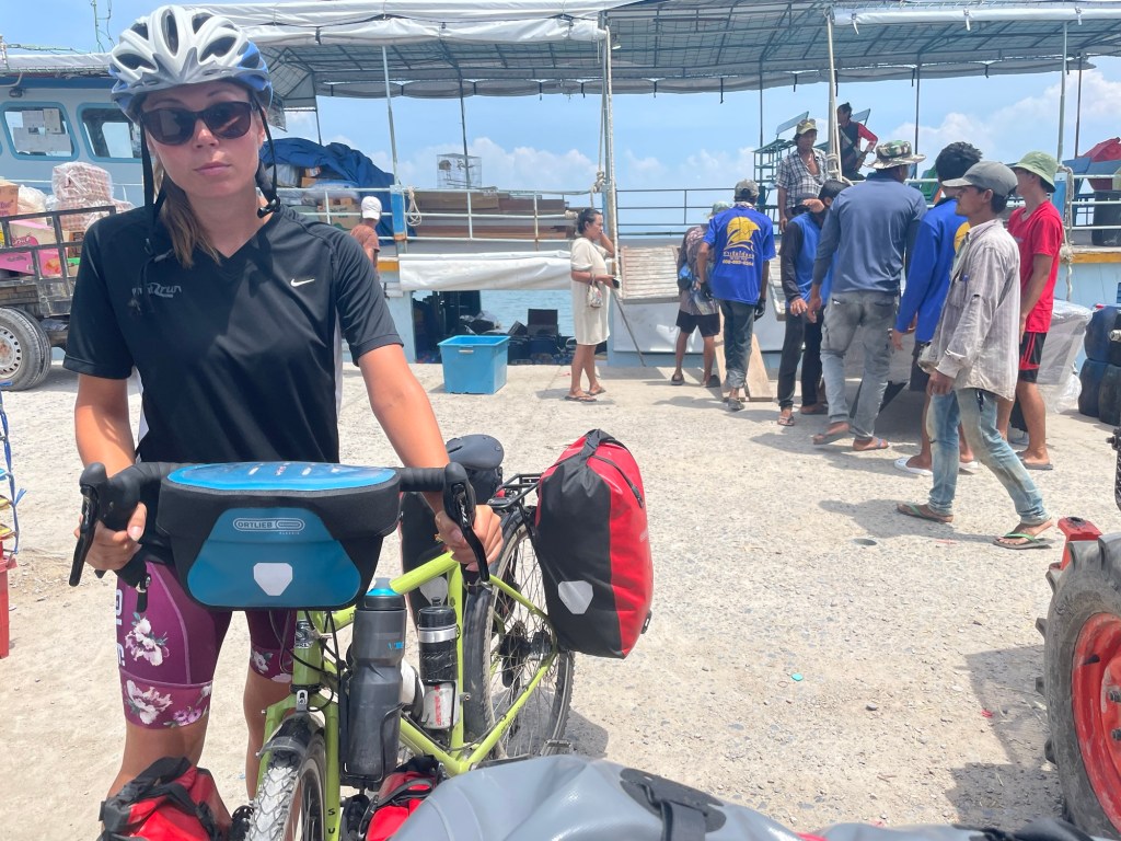 An even bumpier track led us down the last 50m to the pier. We were swiftly reminded of the fee for the bikes, took our pink ticket, and sat on the benches in front of the boat. It was a bit of a spectacle. We were watching the ‘dock workers’, for lack of a better description, piling the bottom floor of the boat full of goods. It was all being slid down a wooden ramp into the hold. They were clearly being pushed quite hard to work quickly, dripping with sweat, moving hundreds of kilos of ice, fuel canisters, water and food. We were going to an unsustainable place that was for sure.