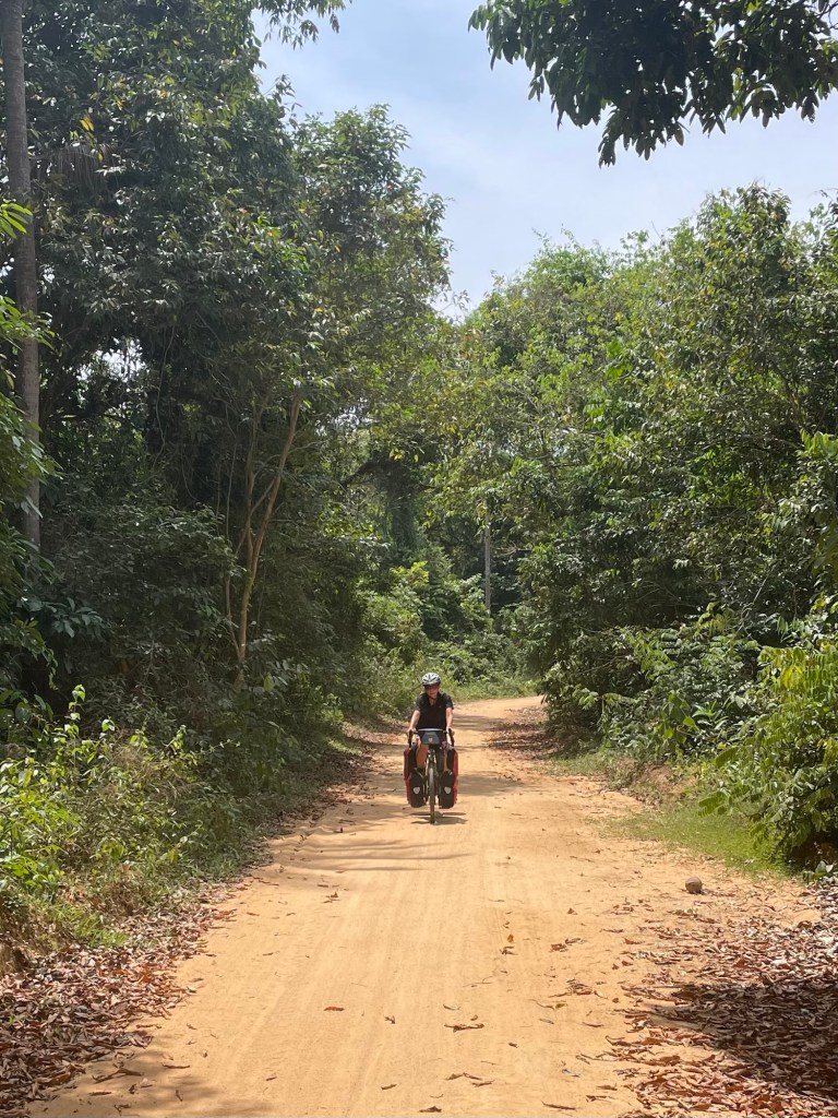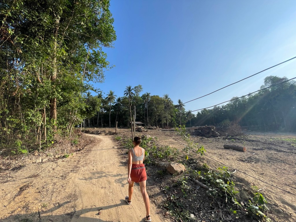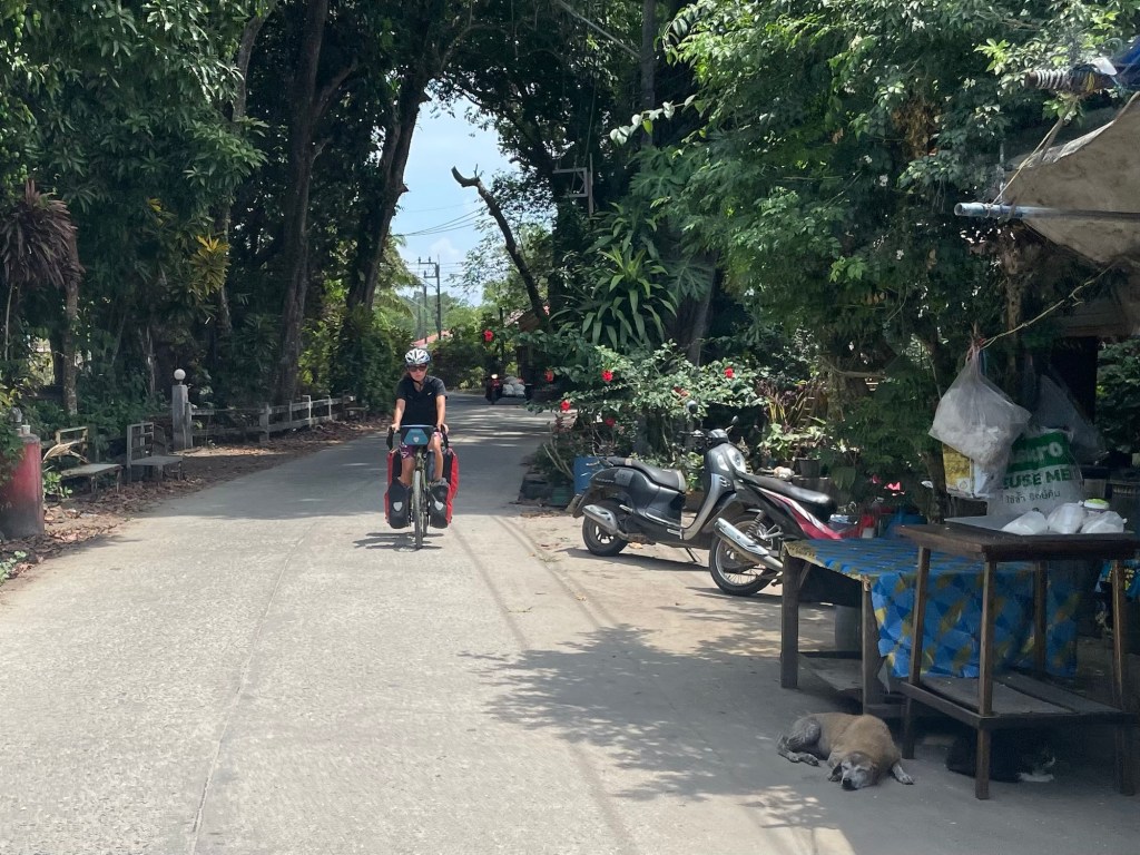 Down the pier we rode, past all the motorbike rental shops, and headed for the place we’d booked. There were a huge number of hotels on the island and that was pretty much it. We’d been recommended to come here by a few cyclists, it seemed like a good place to rest. We went up a steep hill on the concrete road, then following a sign to P.P. Land, took a track, then a narrow path clearly frequented by scooters.