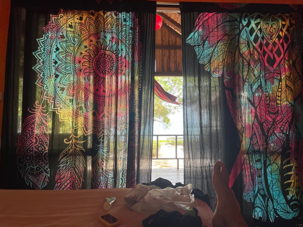 We were staying on the east of the island. The beaches weren’t meant to be as good but it was a highly rated accommodation. We approached the reception, there were a couple of travellers sitting around, but one of them asked if we needed help. Turns out Paul had arrived 20 years ago from Belgium, and never left. He chatted about his journey, comparing it to ours, though he’d used a car. He proudly showed off his banks of lithium batteries and solar panels.