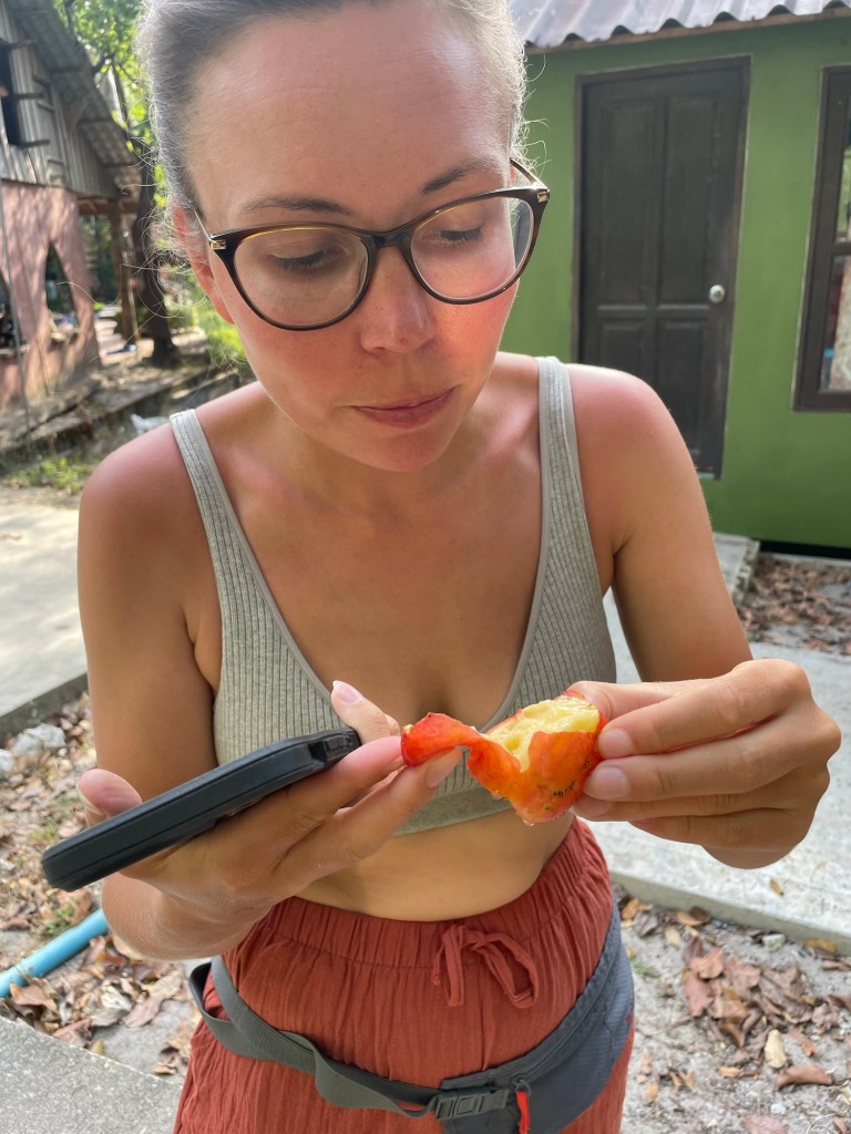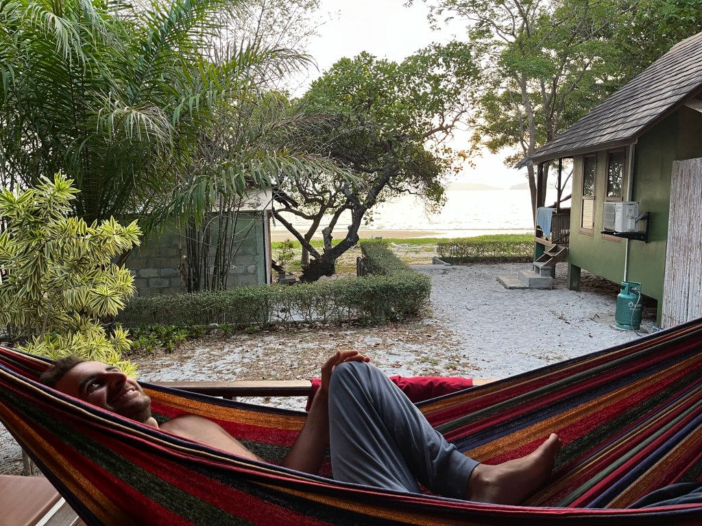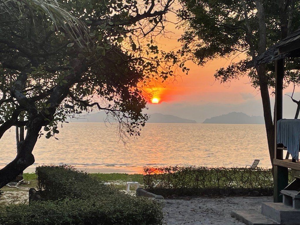 We had the doors open all night, trying to make it a bit fresher. But Frankie didn’t sleep well, she was unduly worried about being bitten. We woke just in time for the sunrise then lay around outside having coffee and some overnight oats we’d prepared. The extra we’d spent to have our own bungalow seemed to be worth it. We didn’t have any major plans for the day and would just see what it threw at us.