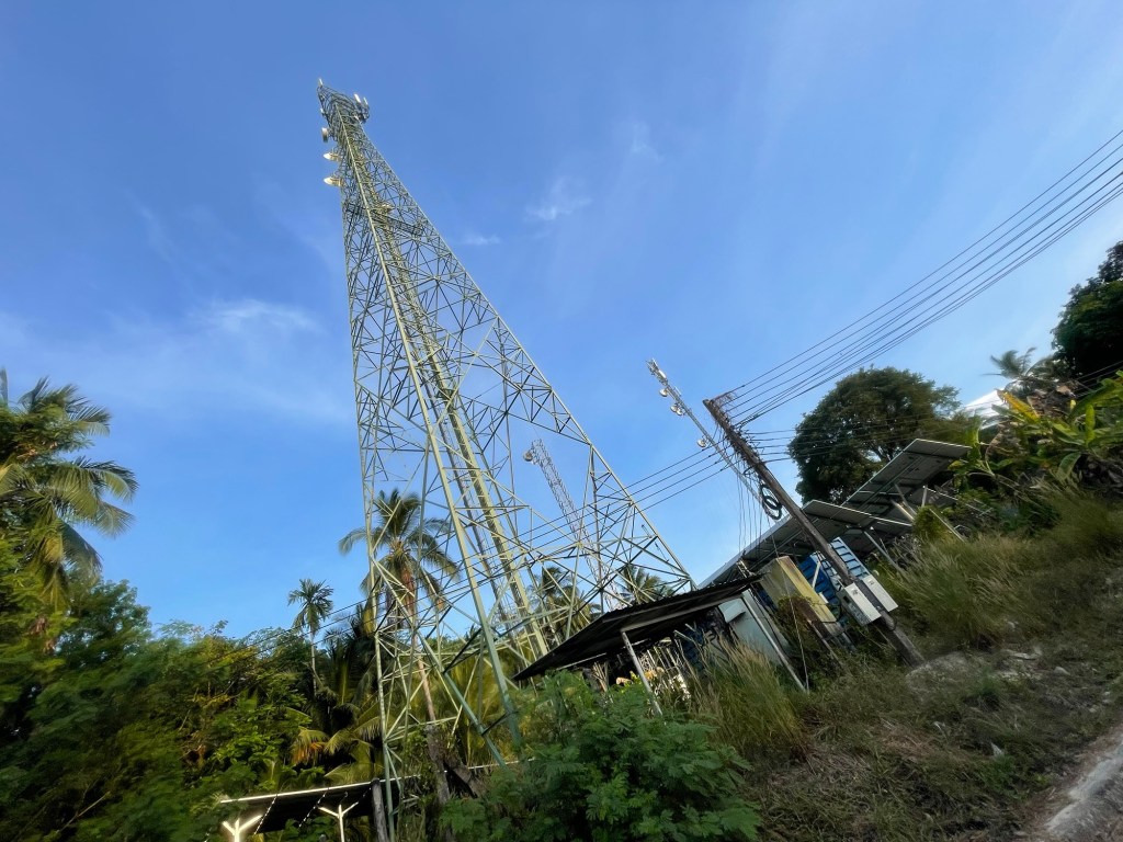 The road narrowed and the surface was even worse. So badly worn that the steel reinforcement net had started becoming a trip hazard. We took a signposted turning down to the beach. There were lots of resorts along the golden sands and the bay was full of anchored boats.