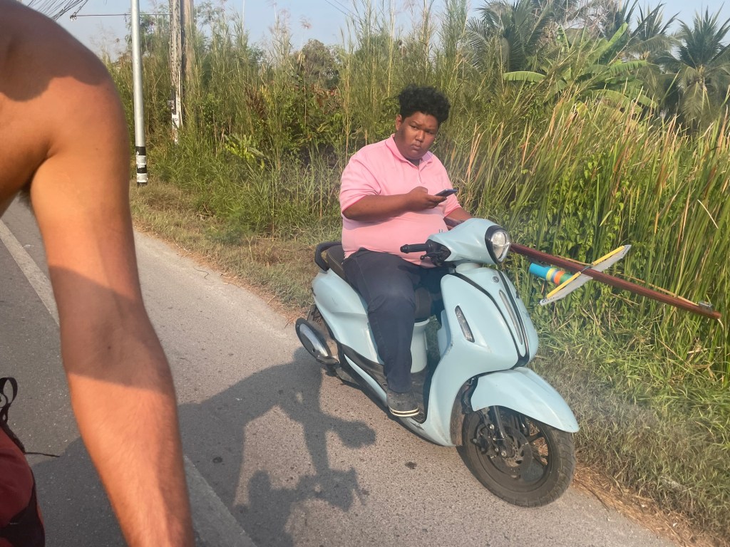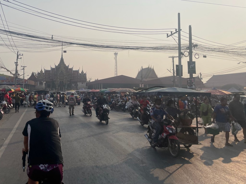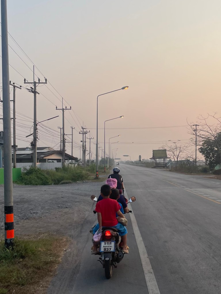 It was beginning to feel like the proximity to Bangkok was imbuing drivers with impatience. We could feel the likelihood of death increasing by the second. A guy even went past on a scooter while holding a harpoon/crossbow. Hopefully for fishing.
