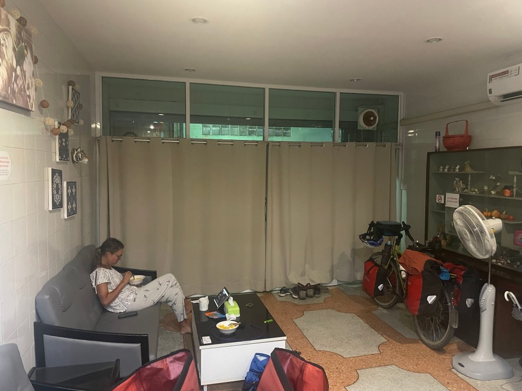 The house we’d rented was down a narrow alleyway. A man called out to us. We stuck out like a sore thumb. We were definitely in the right place. The house had big sliding doors and an open living/dining area. Not being exposed to the Sun, it was gloriously cool. Even without air conditioning. We sauntered around. Had a shower. We’d just cycled into Bangkok. It wasn’t half as bad as the over excited tribes insist online. It was just another city with no cycling infrastructure. Still, another one of those seminal moments for us.