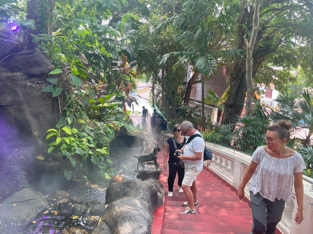 Roger had also made our plans for the day. We welcomed the itinerary as we were overwhelmed with choice. The Golden Mount temple was one of the many sites of worship that one had to consider visiting. It was only a short bus ride away. The ‘mount’ was entirely man made. After changing into trousers we moved through the mystical mist and started climbing the incredibly small rise staircase. On the way Jonathan sounded the enormous gong. The top was a little platform with views of the smoggy cityscape.