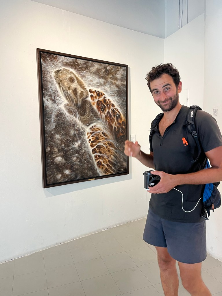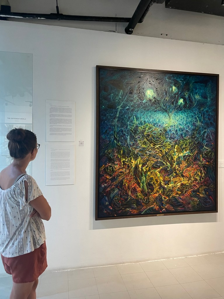 Over the road was the Bangkok Art & Culture Centre. An art gallery set in a circular pattern on the outside of 4 floors. On the inside was a mix of shops and cafes. We slowly ascended, enjoying the more inclusive flowing nature of the design. Often art galleries feel exclusionary to anyone but the elite. This place set the right balance.