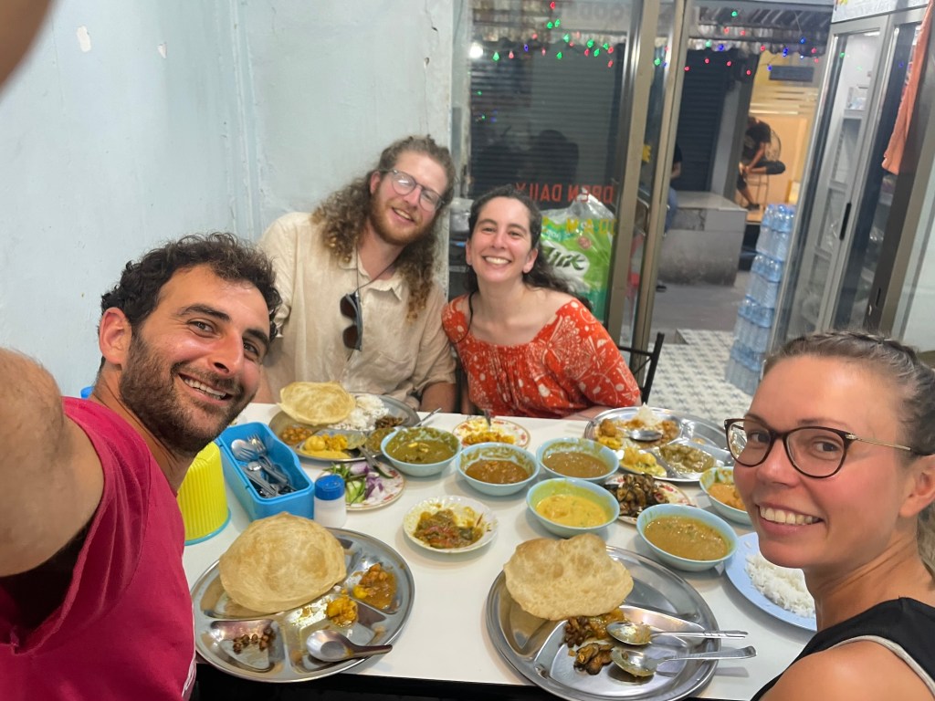 We were soon embroiled in the usual splurging of information about our journeys and lives. Our food arrived. A veritable feast. The man sadly brought over the dish with dairy in it too. Communication error. The food was fantastic, if a little bit similar. It was unusual to have Indian spices circulating our mouths. Gabby was a teacher too and Shalom was interested in becoming one. Jonathan spoke extensively with them about teaching and its modern day challenges. They were practicing Jews, seeking out centres of Judaism in the large cities. We were glad the topic of Palestine never surfaced, we happily have no idea how they think of it.