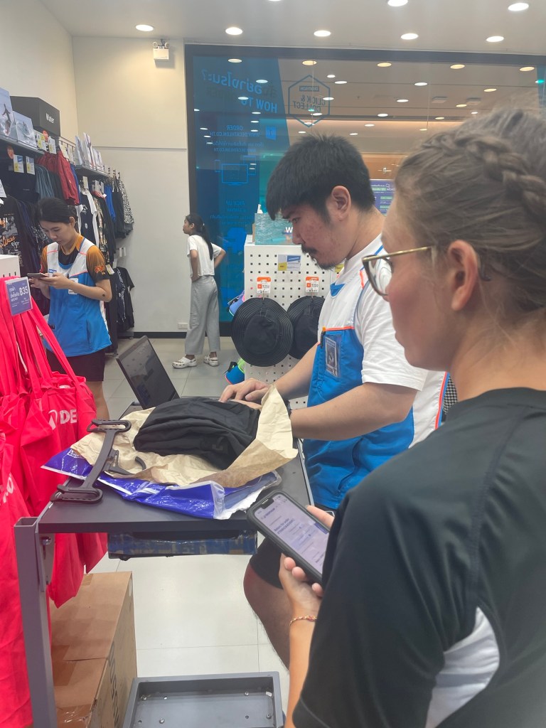We broke the journey with a break in a cool rival convenience store chain, Mini Big C. Bought a mango. And some bananas. By the time we arrived at the Siyam shopping centre we were plenty grateful for the air conditioning again. Sadly the ordered shorts lacked an internal brief. The returns process involved the staff filing it in a google sheet. They had some more appropriate shorts in stock anyway. One more item ticked off the todo list.