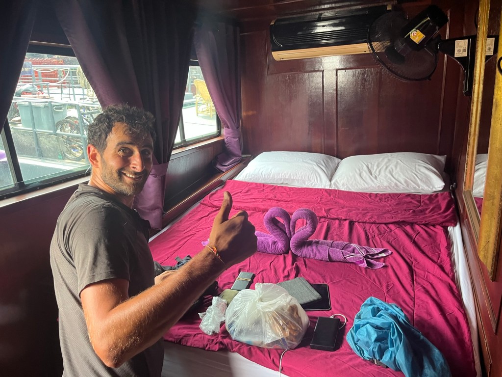 Roger was there to greet us. We locked the bikes to the railings on the floating platform. Then covered them with one of the tarps to keep off the powerful rays of UV. We locked our belongings in our panelled wood cabin, then ventured to Tha Maharaj pier, a few hundred metres away.
